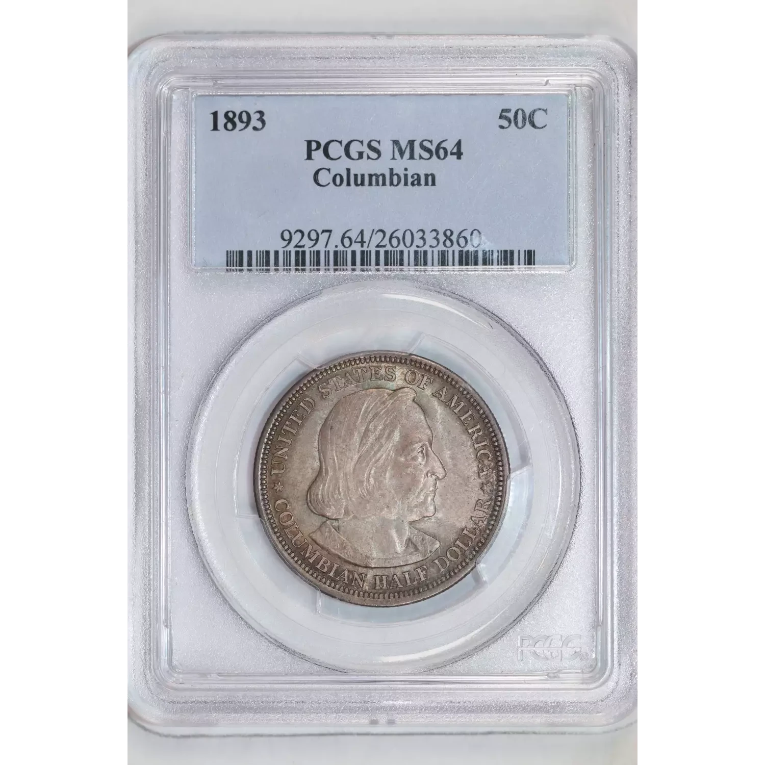 1893 COLUMBIAN SILVER COMMEMORATIVE HALF DOLLAR PCGS MS64