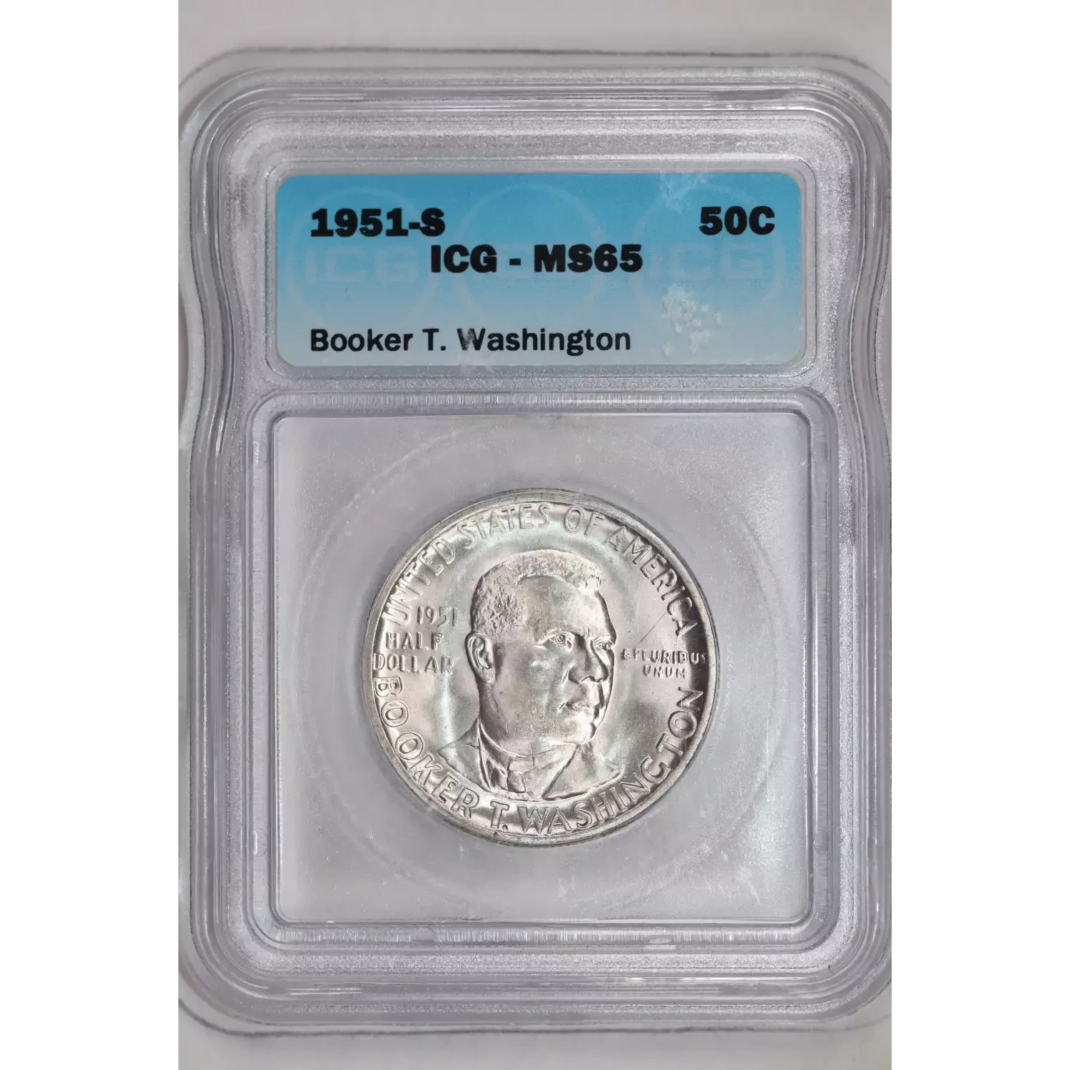 1951-S BOOKER T WASHINGTON SILVER COMMEMORATIVE HALF DOLLAR ICG MS65