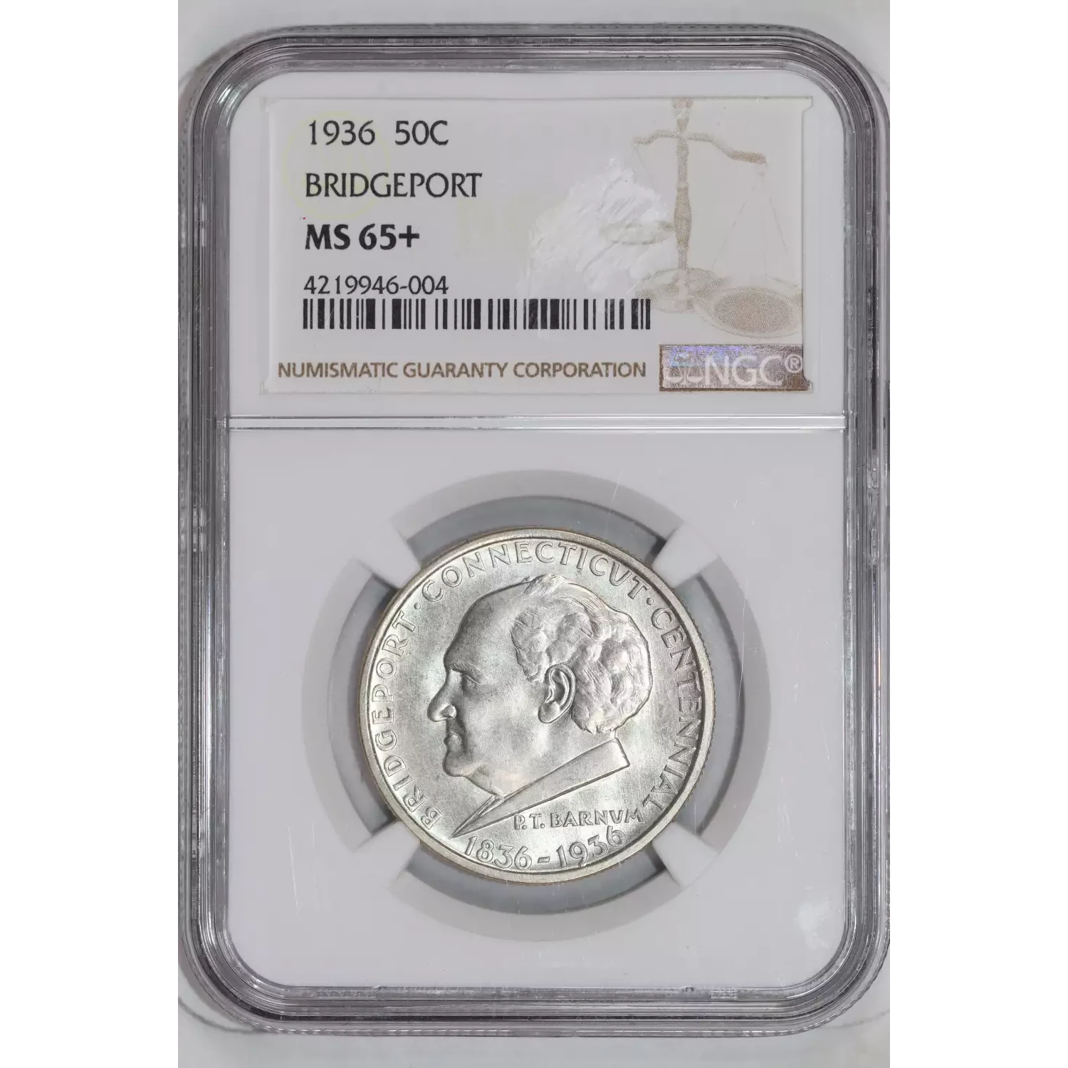 1936 BRIDGEPORT SILVER COMMEMORATIVE HALF DOLLAR NGC MS65+