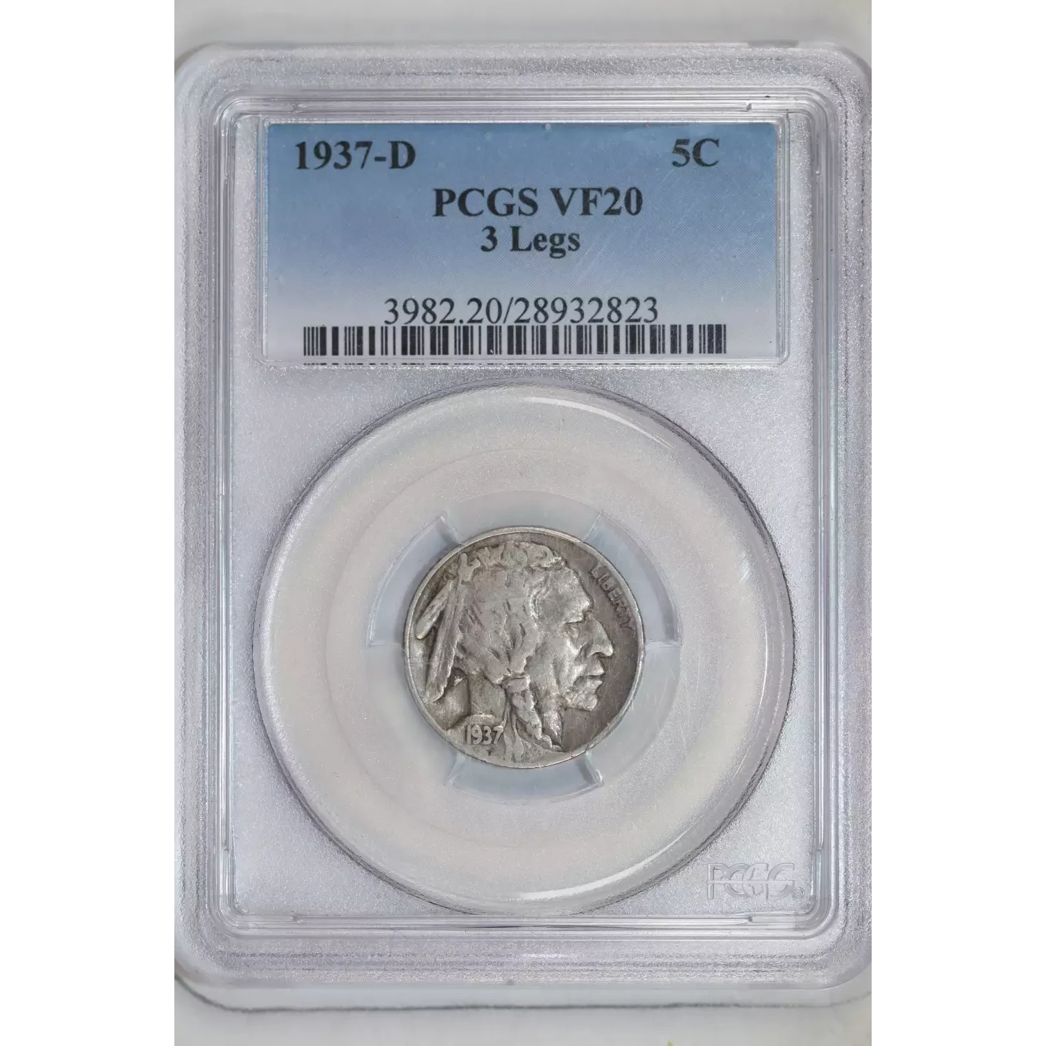 1937-D Nickel Indian Head or Buffalo PCGS VF-20 3 Legs