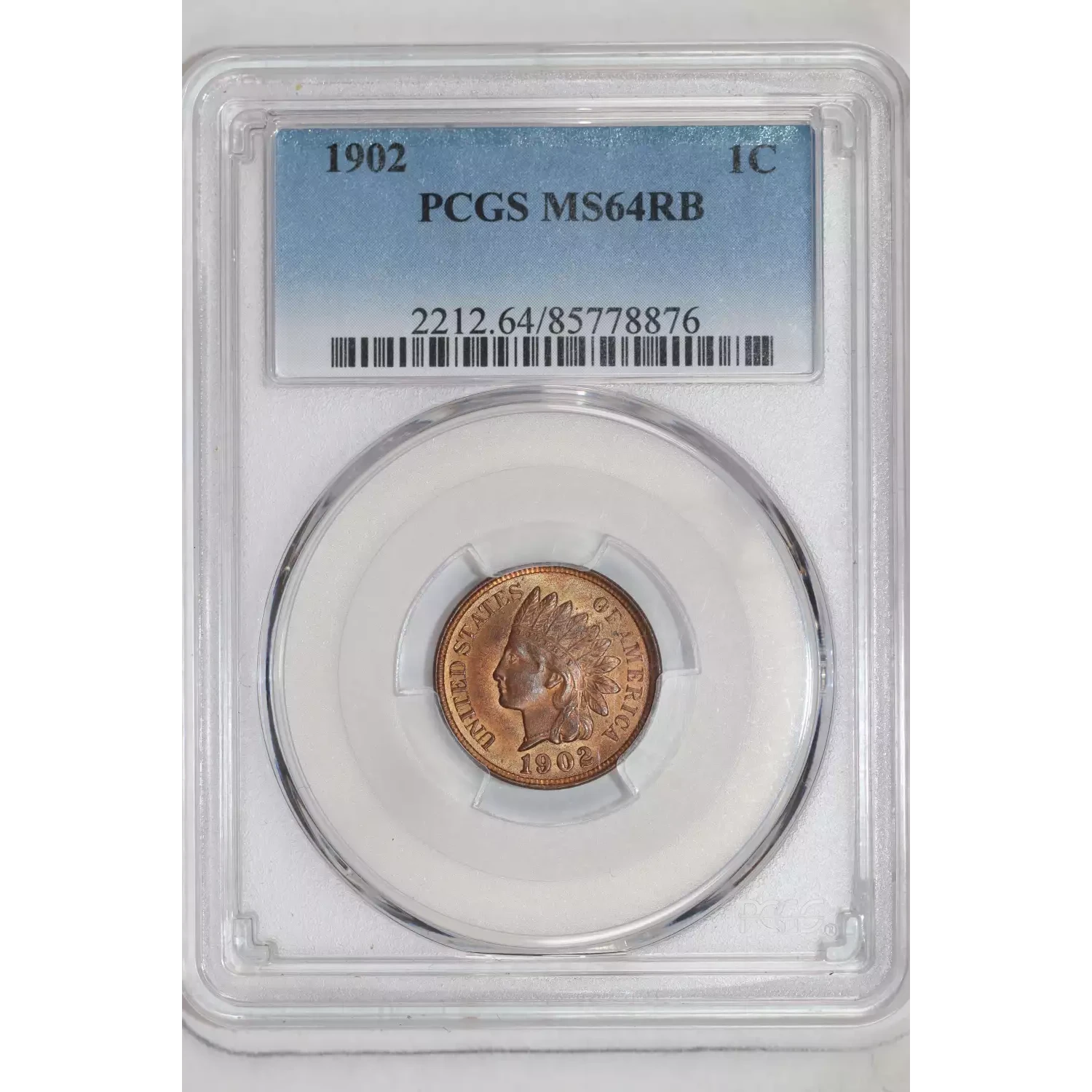 1902 INDIAN HEAD CENT PCGS MS64 RB