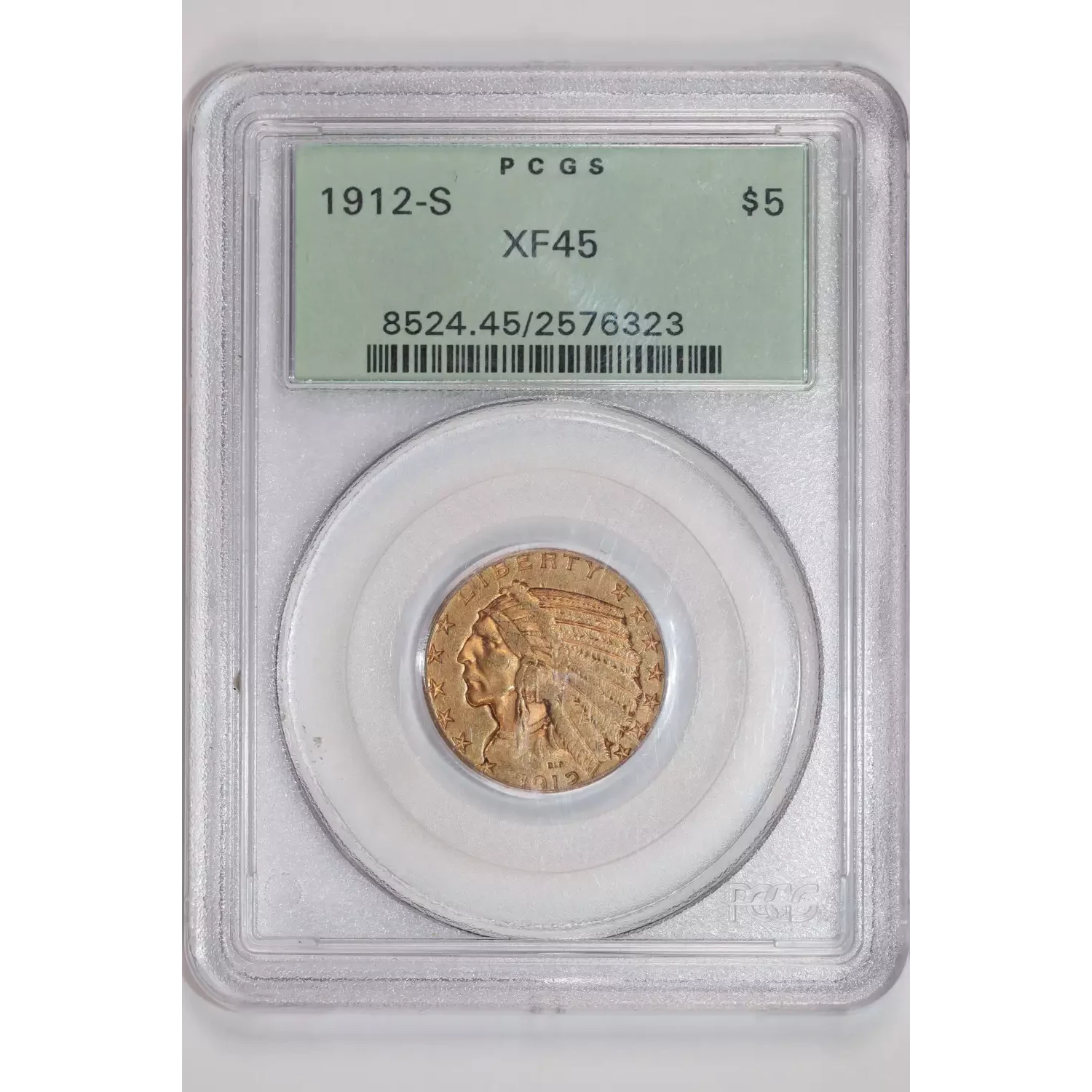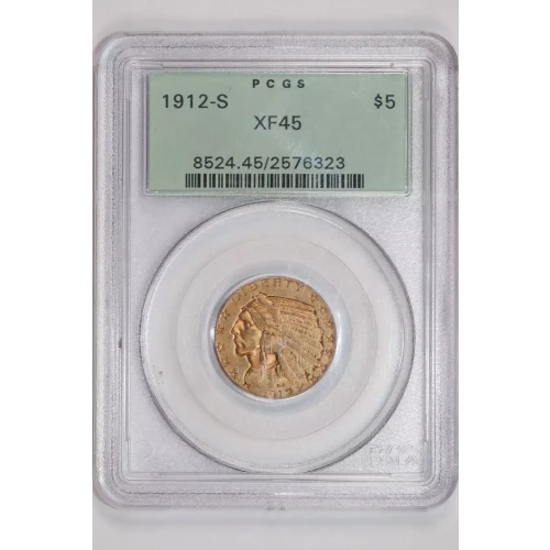 1912-S $5 GOLD INDIAN HALF EAGLE PCGS XF45 OGH