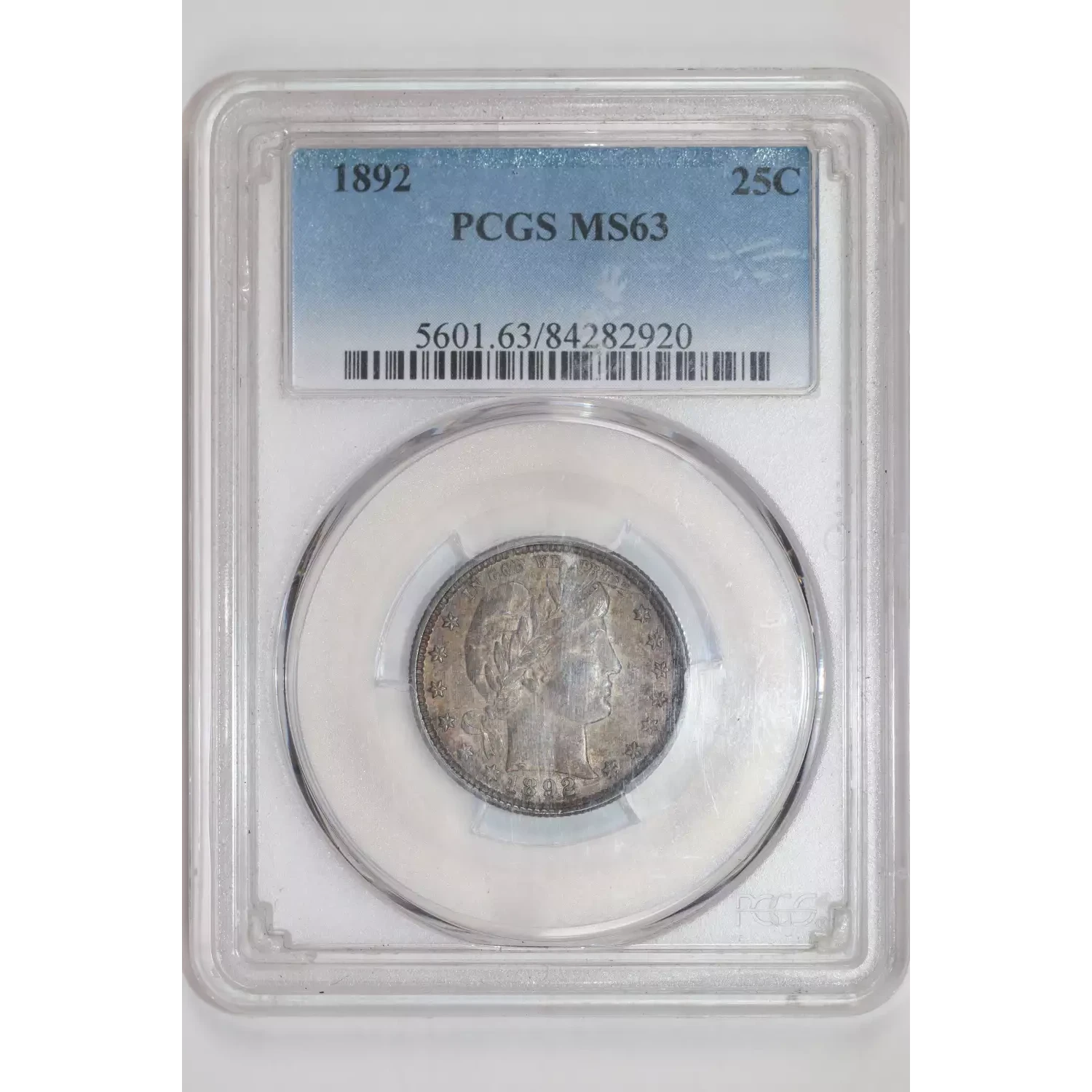 1892 Quarter Dollars Barber or Liberty Head PCGS MS-63