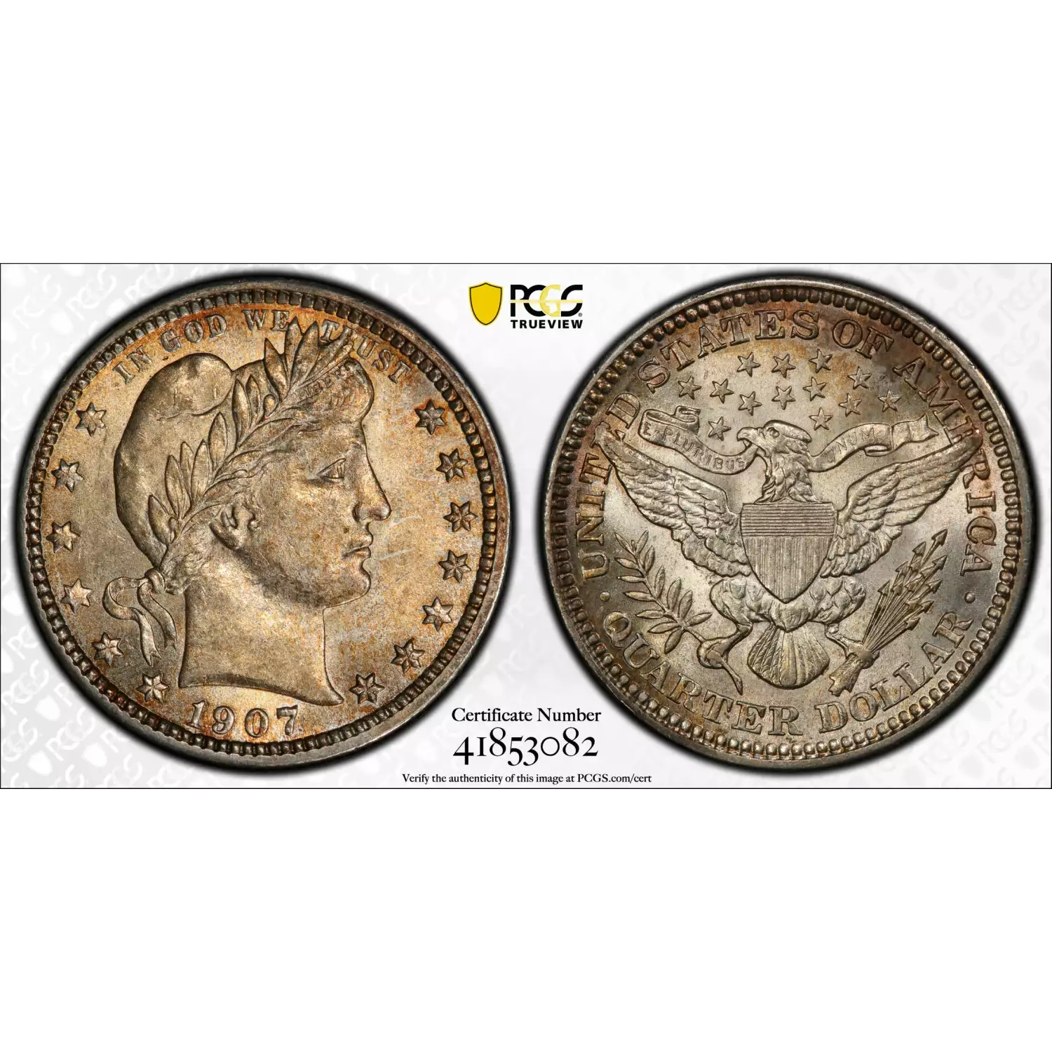 1907 Quarter Dollars Barber or Liberty Head PCGS MS-62