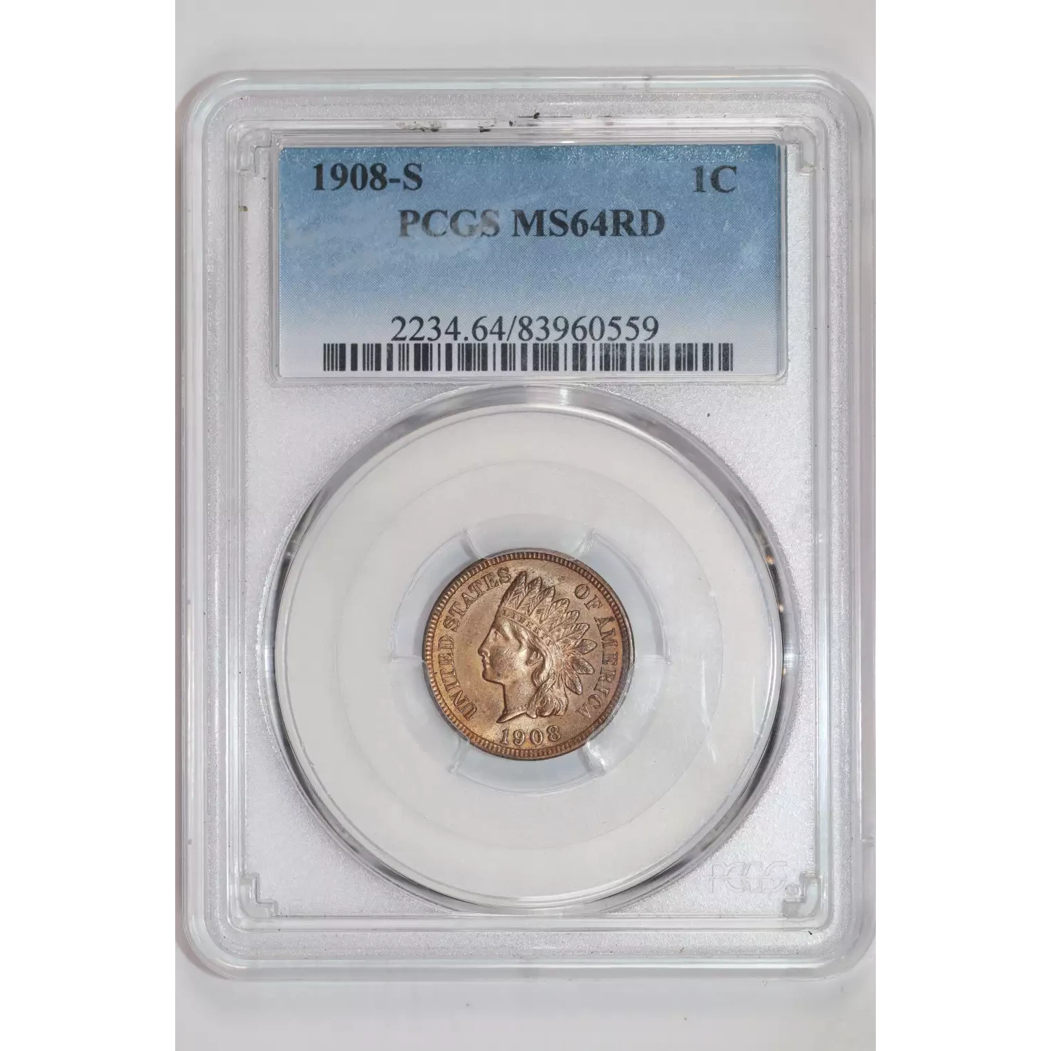 1908-S INDIAN HEAD CENT PCGS MS64 RED