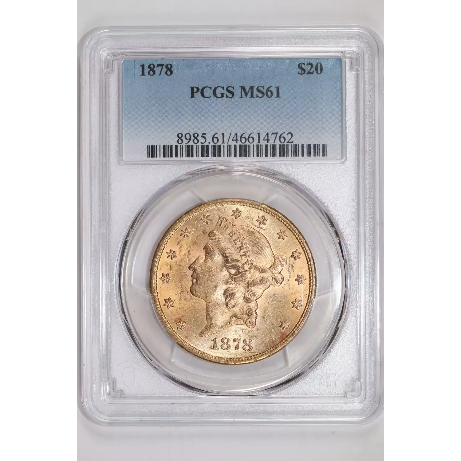 1878 $20 GOLD LIBERTY DOUBLE EAGLE PCGS MS61