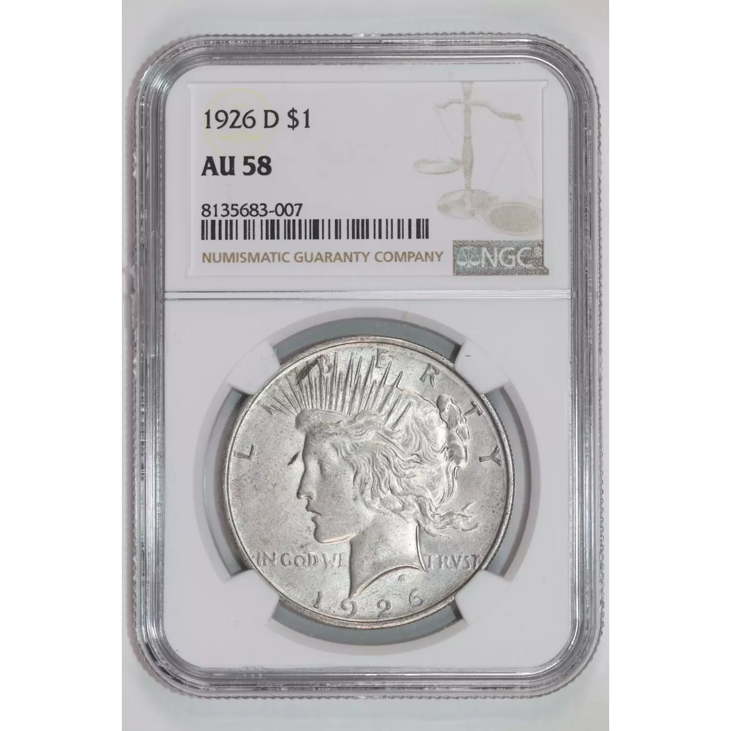 1926-D PEACE DOLLAR NGC AU58