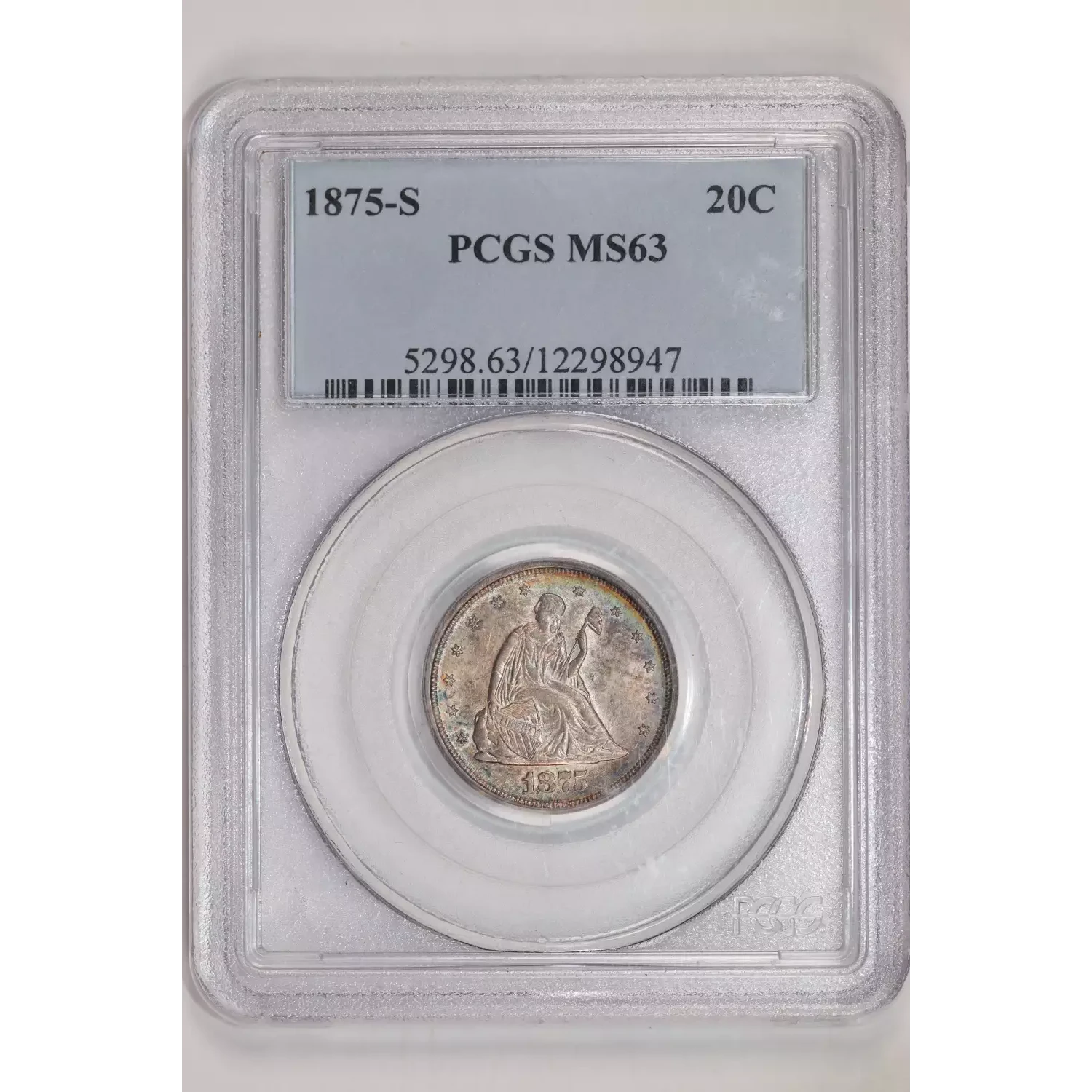 1875-S TWENTY CENT PIECE PCGS MS63 RAINBOW TONING!