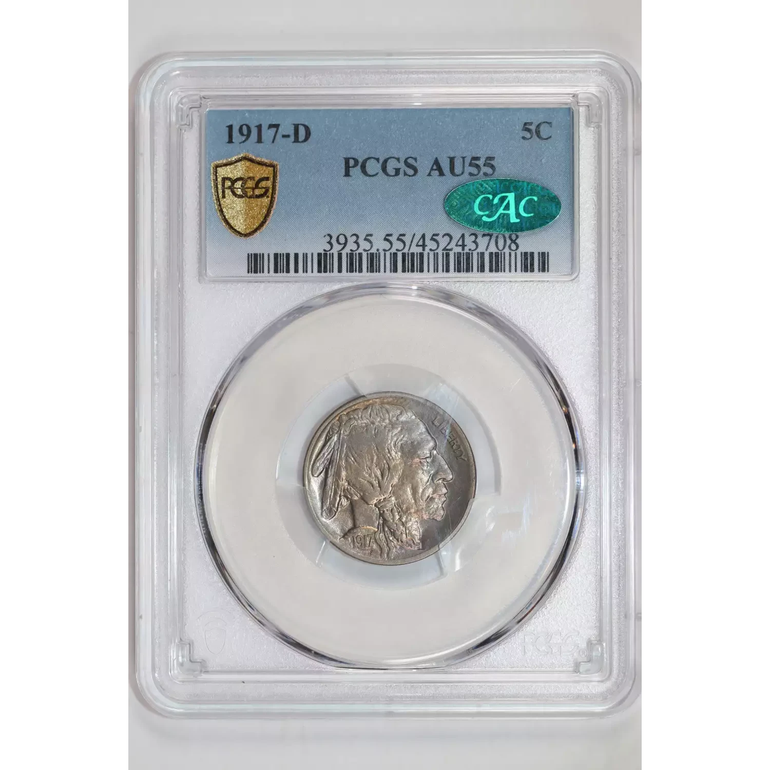 1917-D Nickel Indian Head or Buffalo PCGS AU-55 CAC