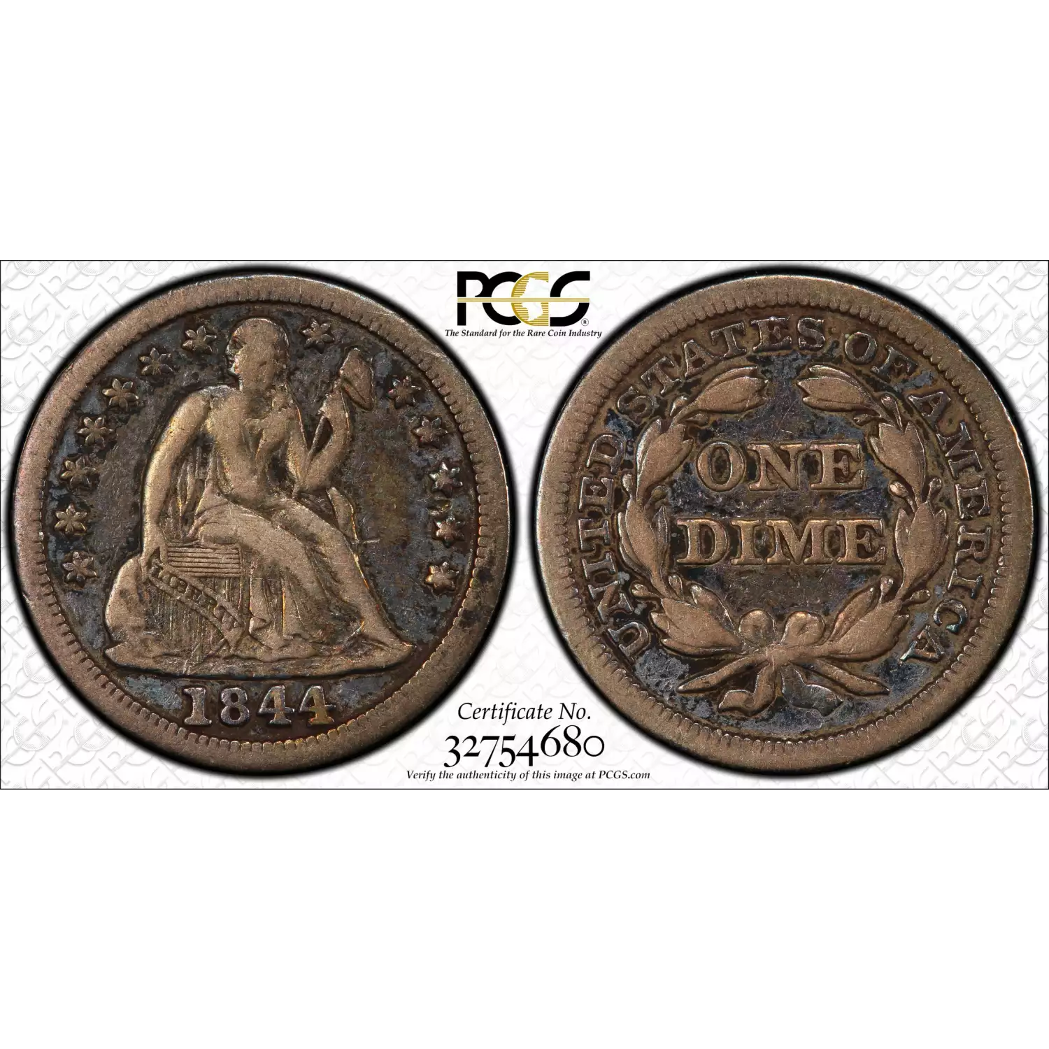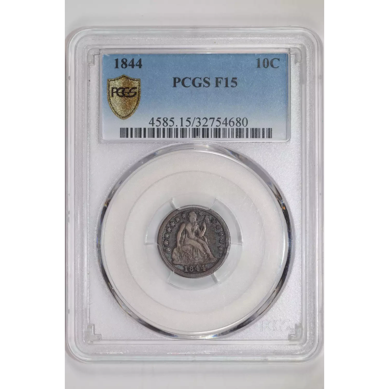 1844 SEATED LIBERTY DIME PCGS F15