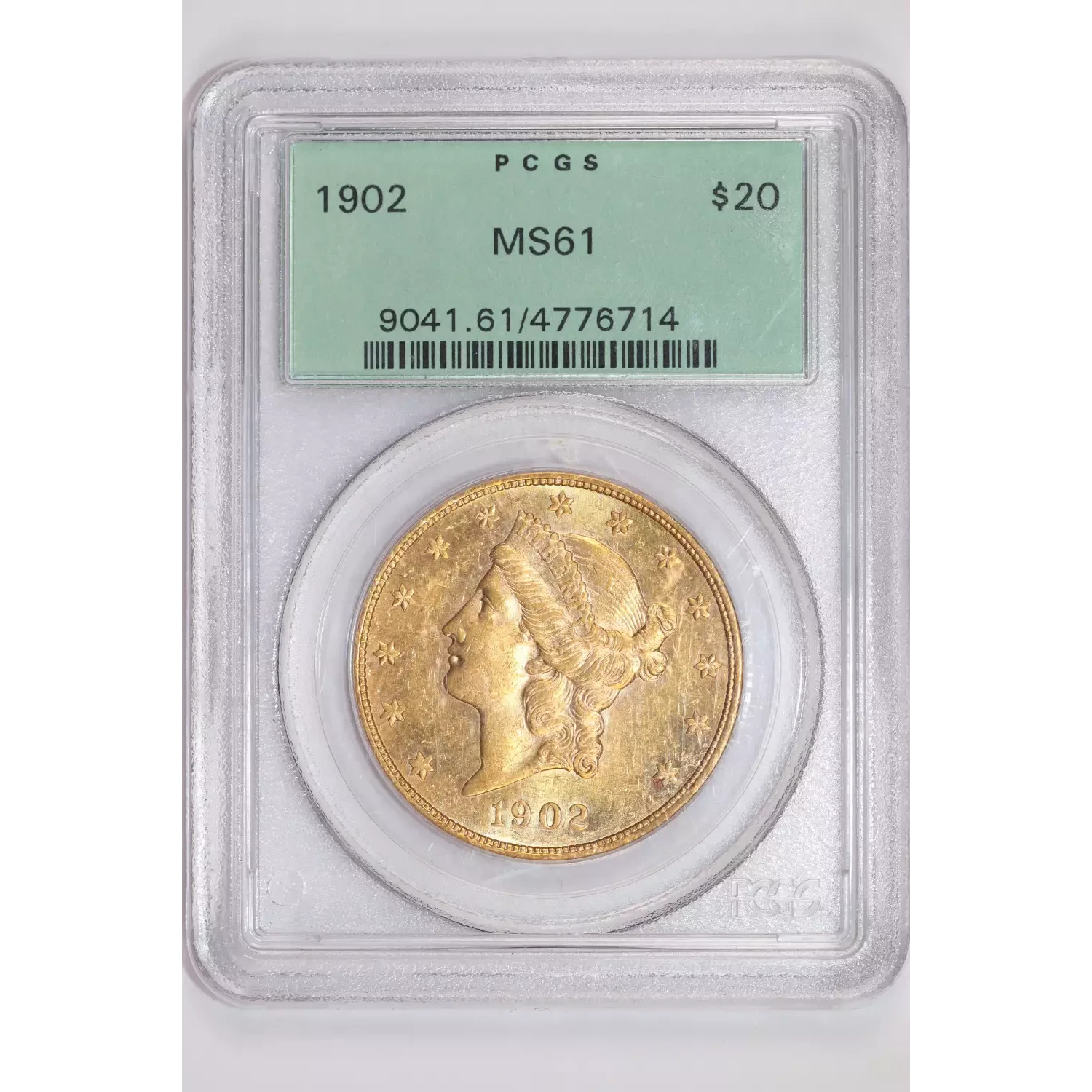 1902 $20 GOLD LIBERTY DOUBLE EAGLE PCGS MS61 OGH - LOOKS PL! VERY LOW MINTAGE!