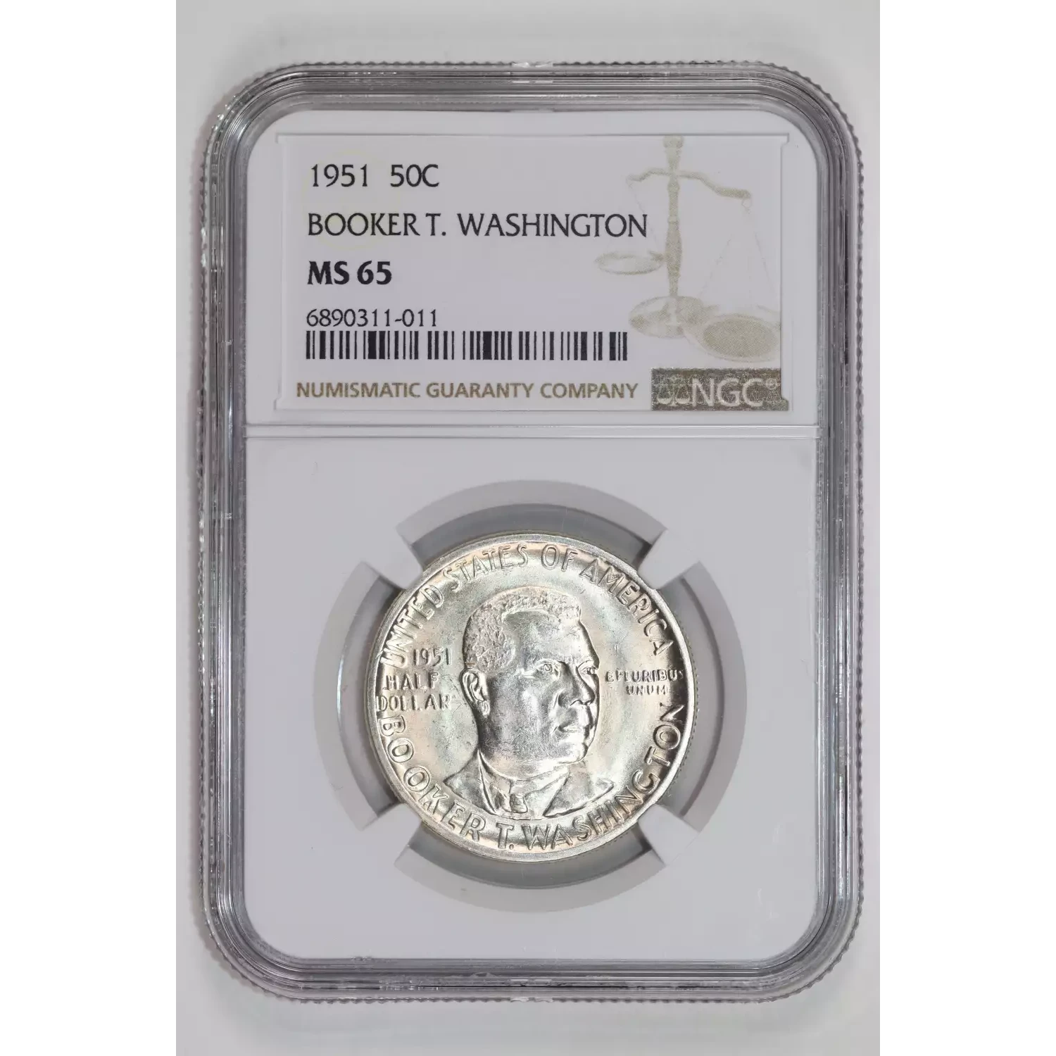 1951 BOOKER T WASHINGTON SILVER COMMEMORATIVE HALF DOLLAR NGC MS65