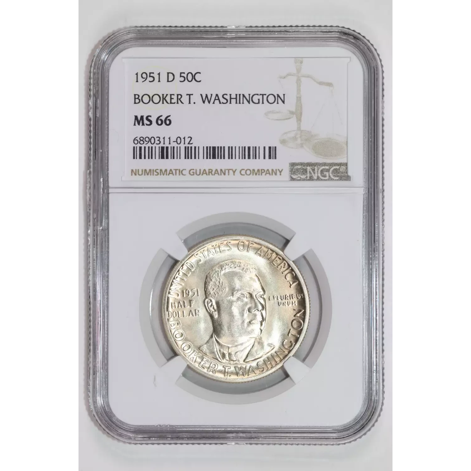 1951-D BOOKER T WASHINGTON SILVER COMMEMORATIVE HALF DOLLAR NGC MS66