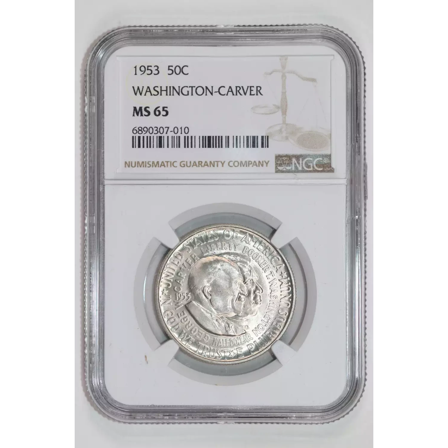 1953 CARVER/WASHINGTON SILVER COMMEMORATIVE HALF DOLLAR NGC MS65