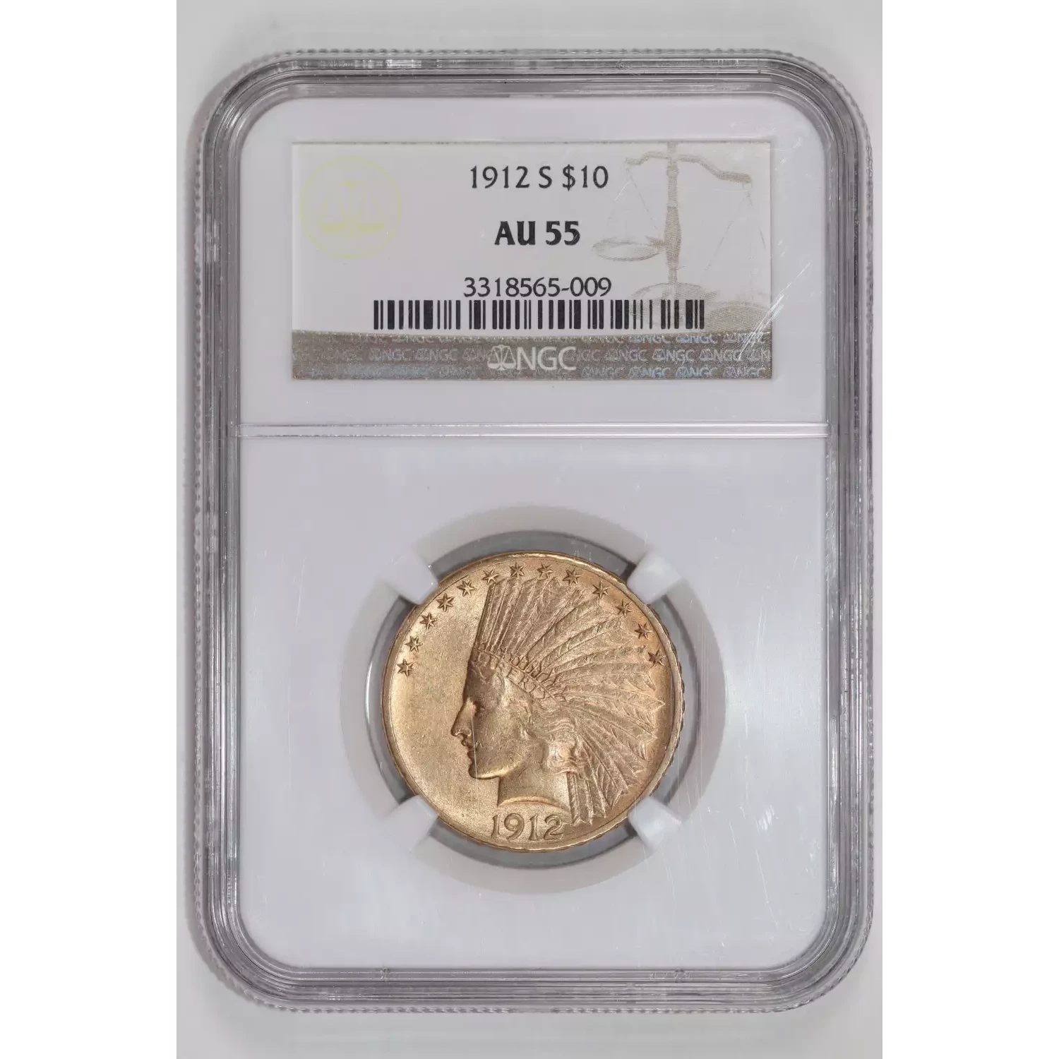 1912-S $10 GOLD INDIAN EAGLE NGC AU55