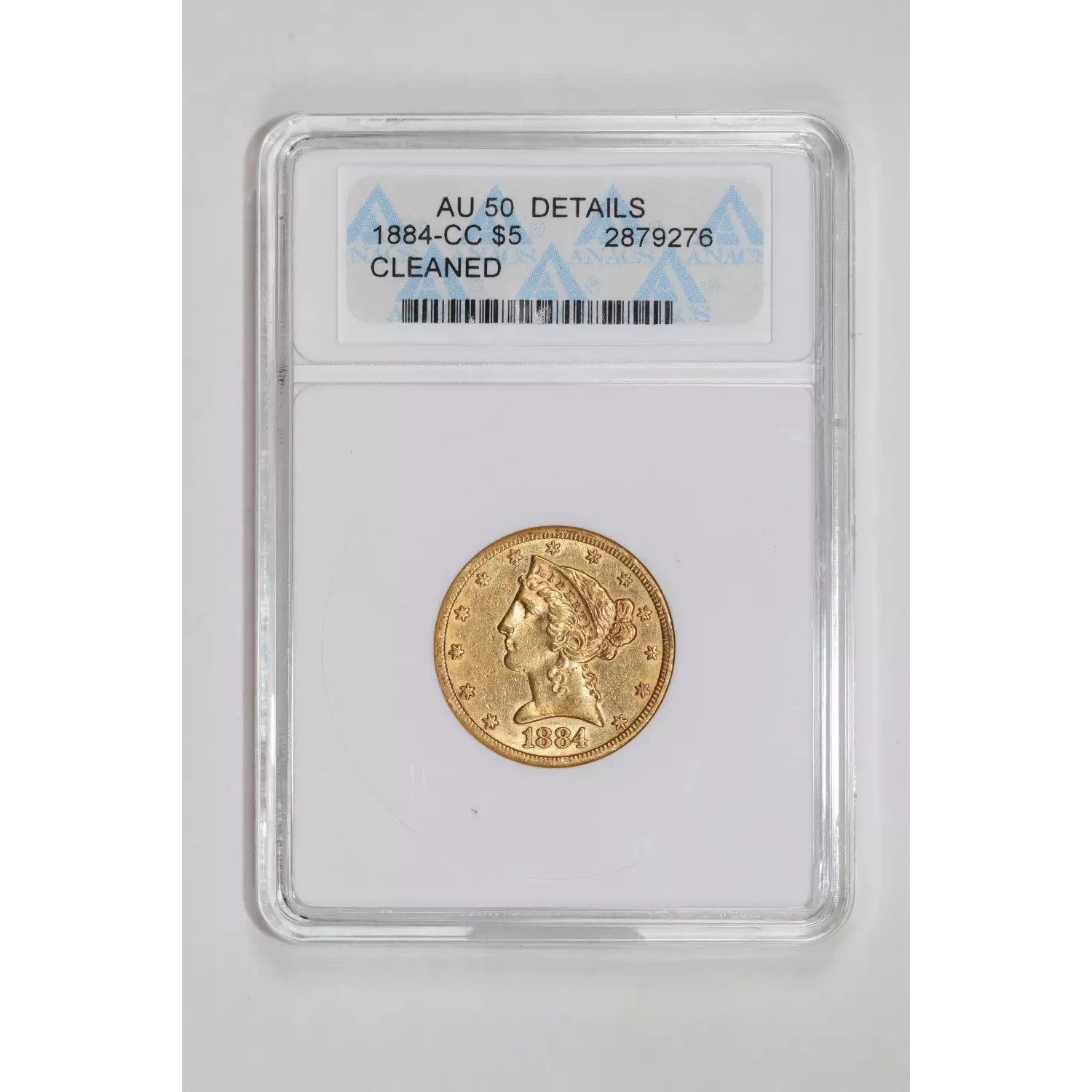 1884-CC $5 GOLD LIBERTY HALF EAGLE ANACS AU50 DETAILS - ONLY 16,402 MINTED!