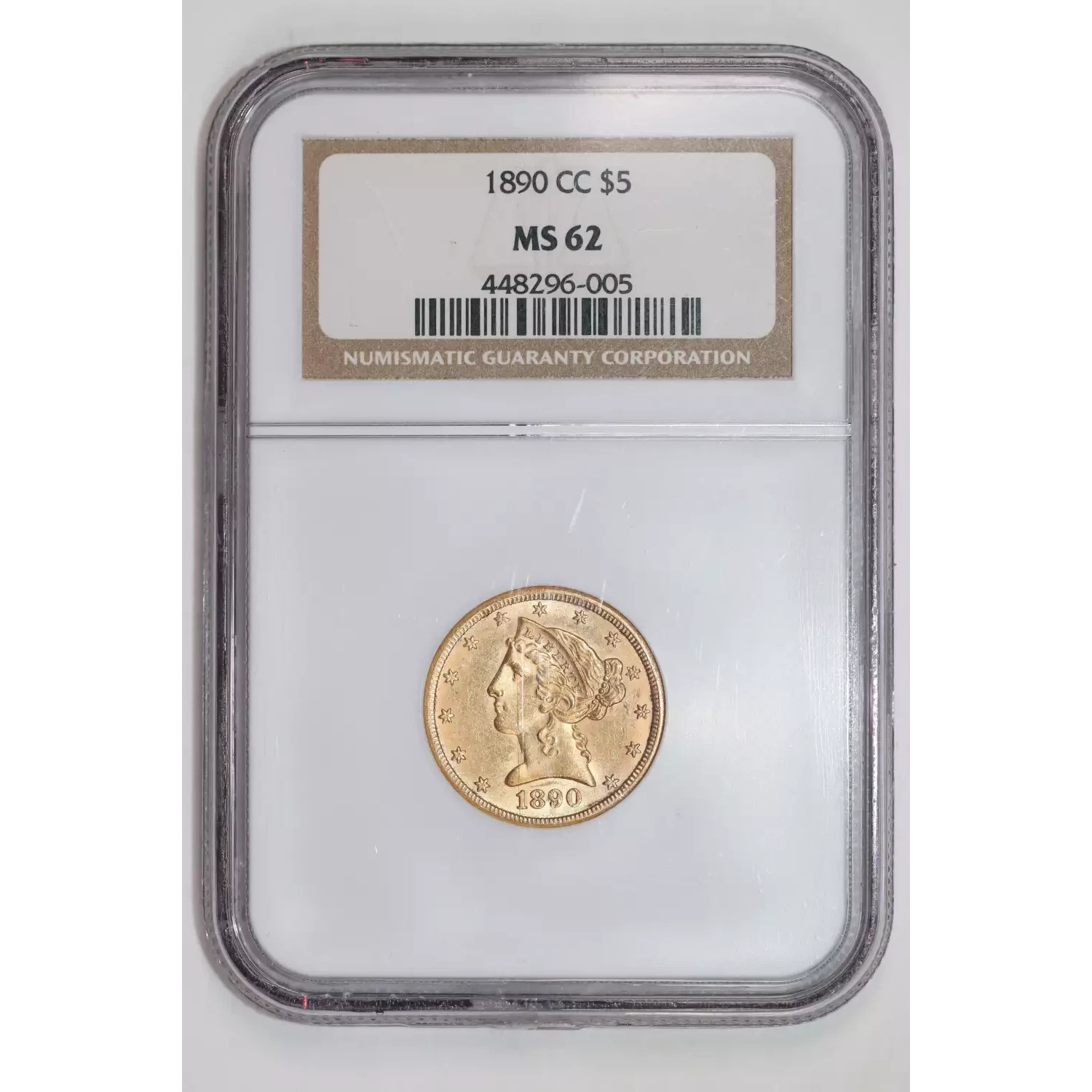 1890-CC $5 GOLD LIBERTY HALF EAGLE NGC MS62 - ONLY 53,800 MINTED!