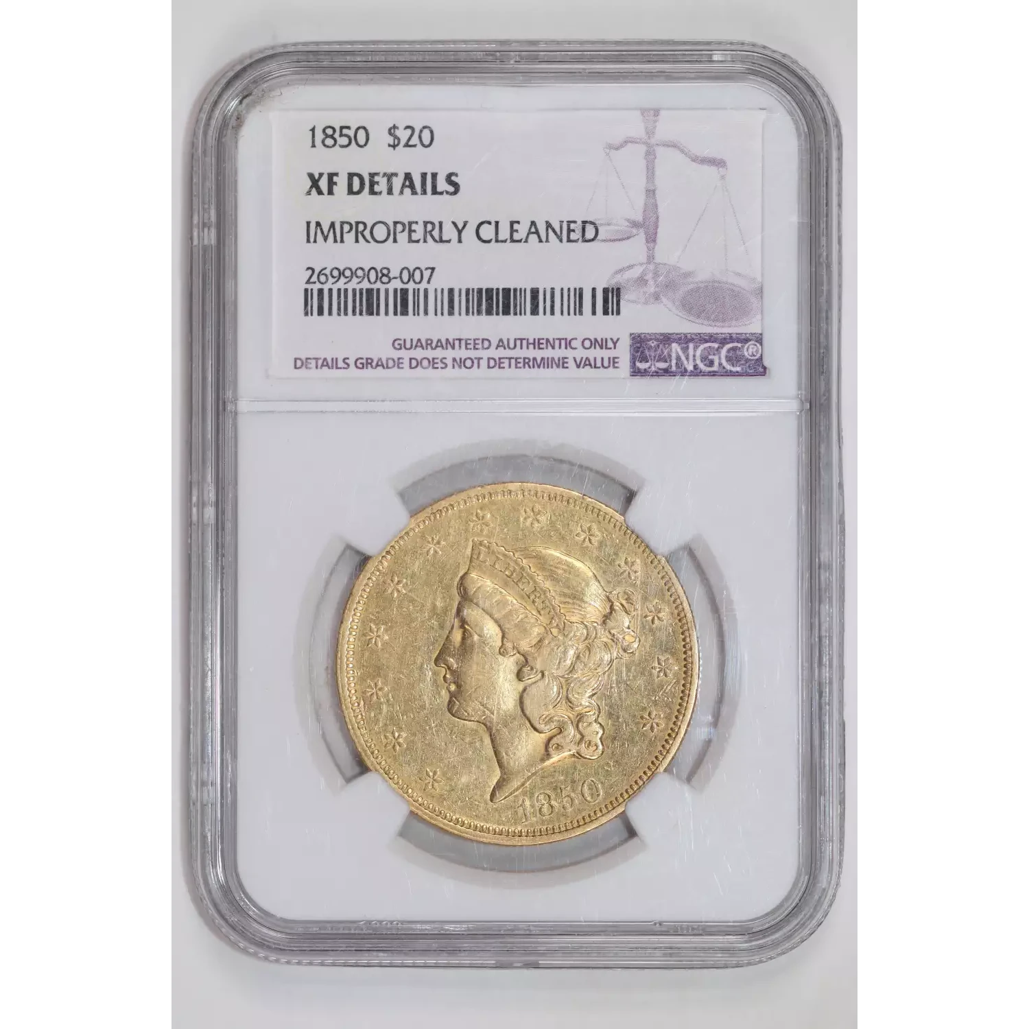 1850 $20 GOLD LIBERTY DOUBLE EAGLE NGC XF DETAILS