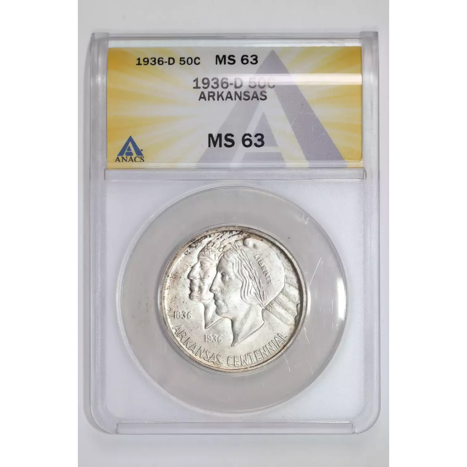 1936-D ARKANSAS SILVER COMMEMORATIVE HALF DOLLAR ANACS MS63