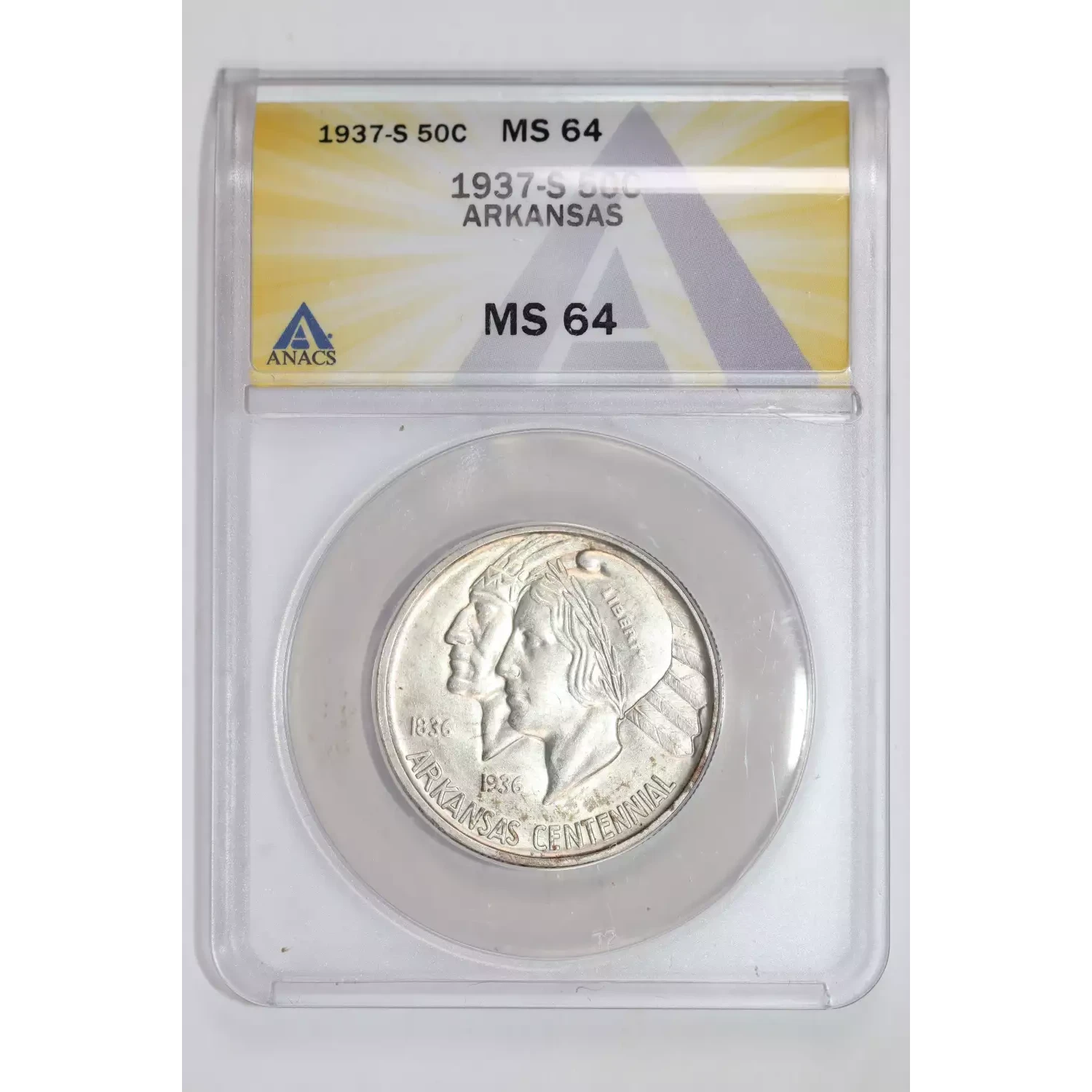 1937-S ARKANSAS SILVER COMMEMORATIVE HALF DOLLAR ANACS MS64