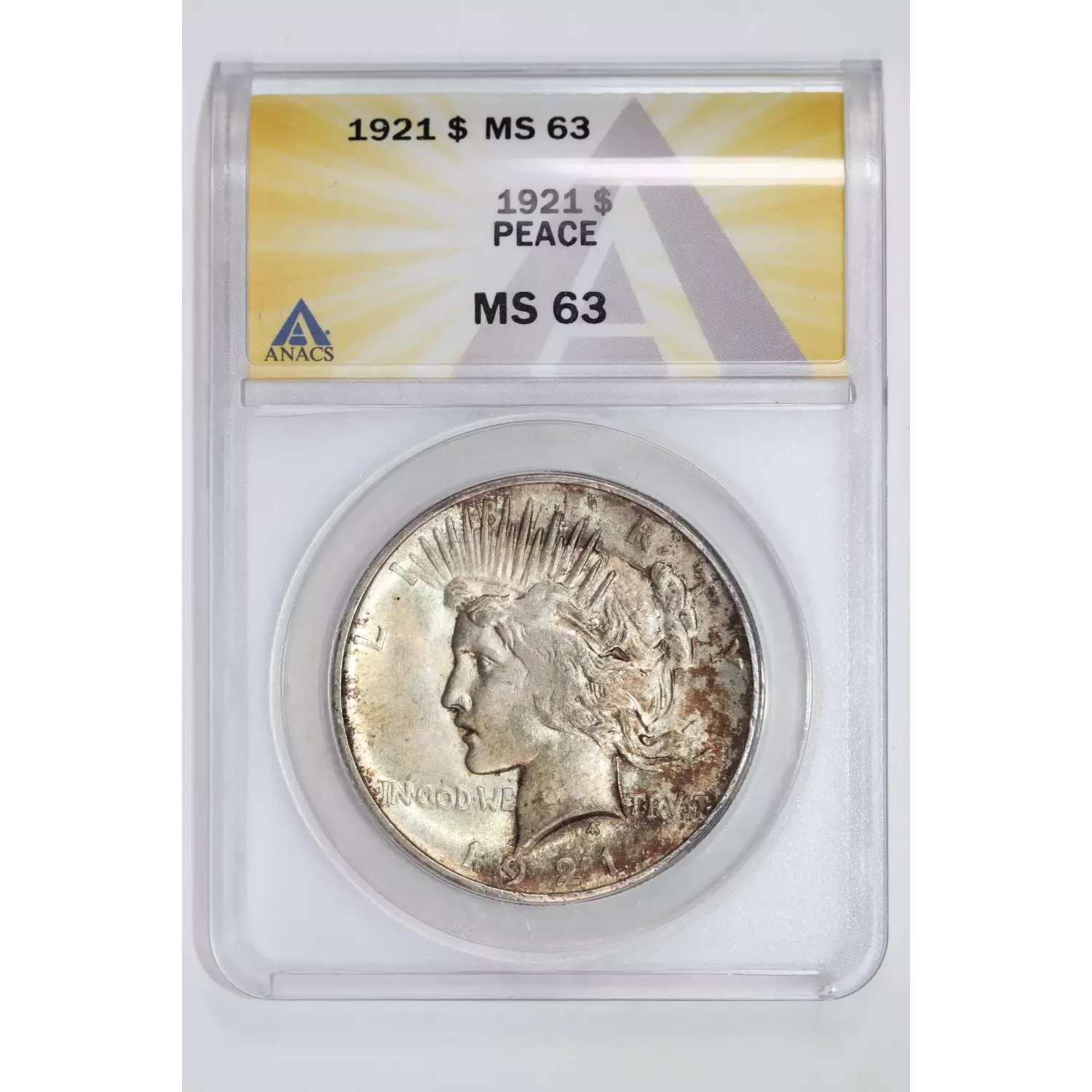 1921 HIGH RELIEF PEACE DOLLAR ANACS MS63