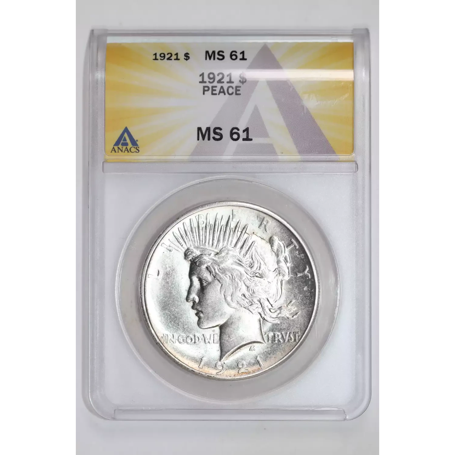 1921 HIGH RELIEF PEACE DOLLAR ANACS MS61