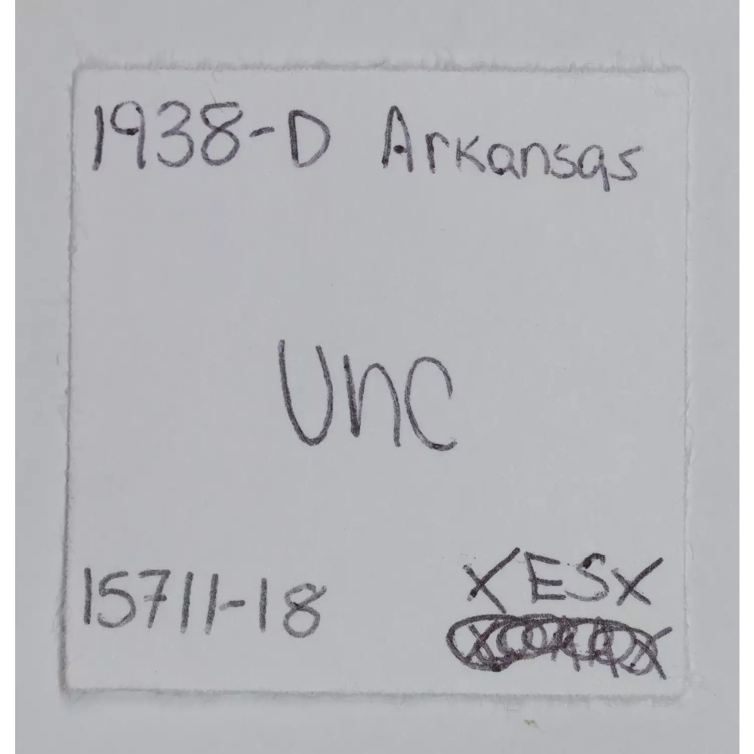 1938-D ARKANSAS SILVER COMMEMORATIVE HALF DOLLAR UNCIRCULATED