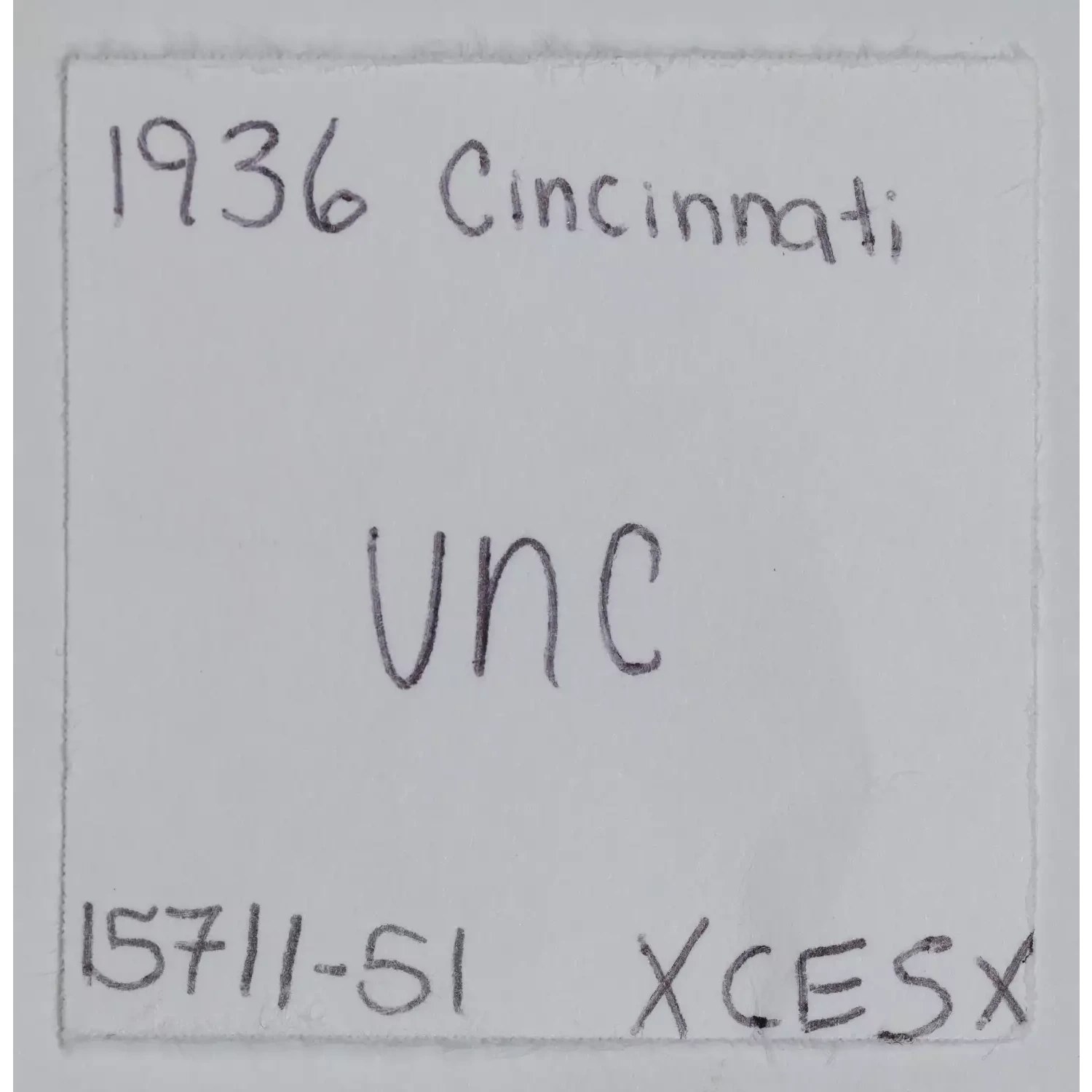 1936 CINCINNATI SILVER COMMEMORATIVE HALF DOLLAR UNCIRCULATED