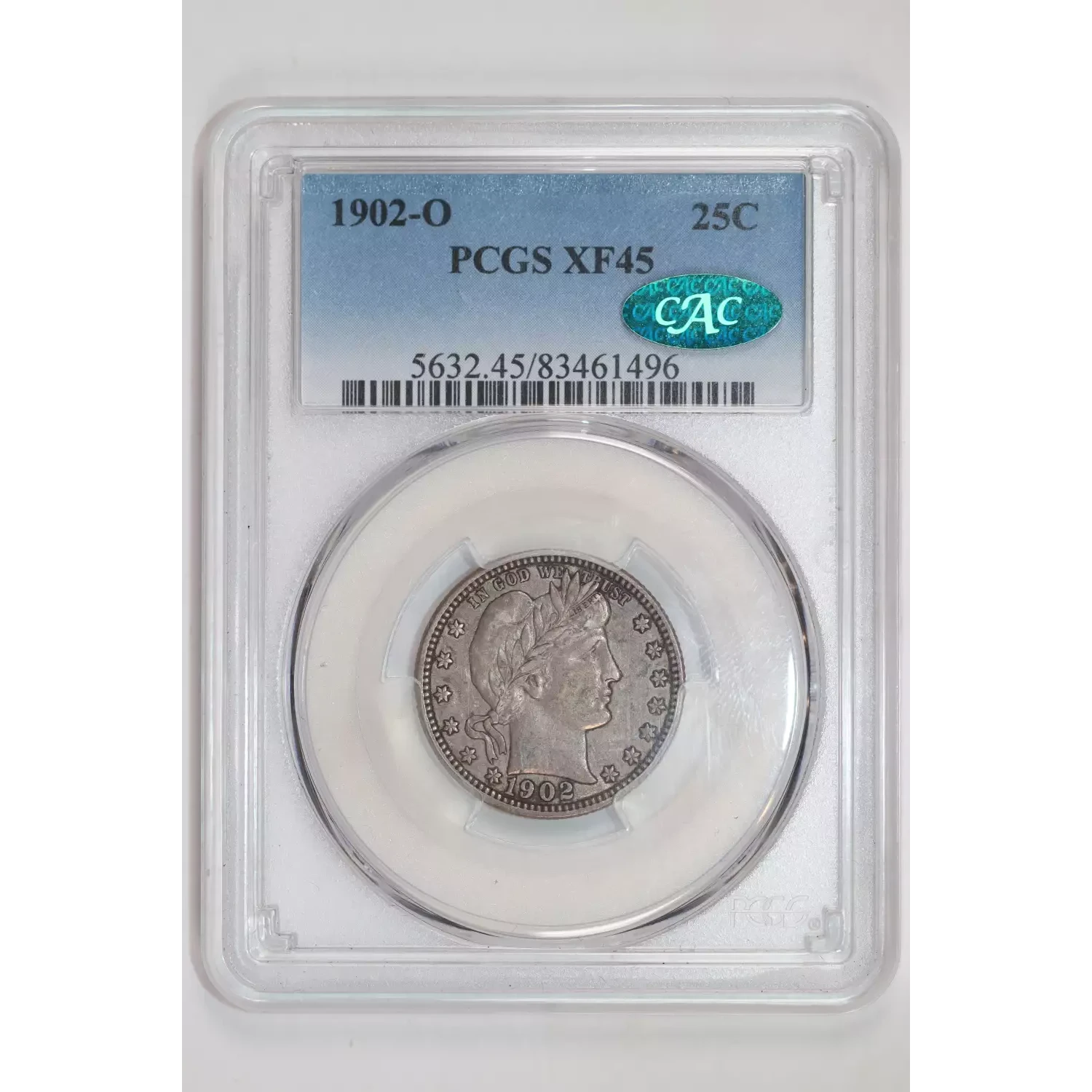 1902-O Quarter Dollars Barber or Liberty Head PCGS XF-45 CAC