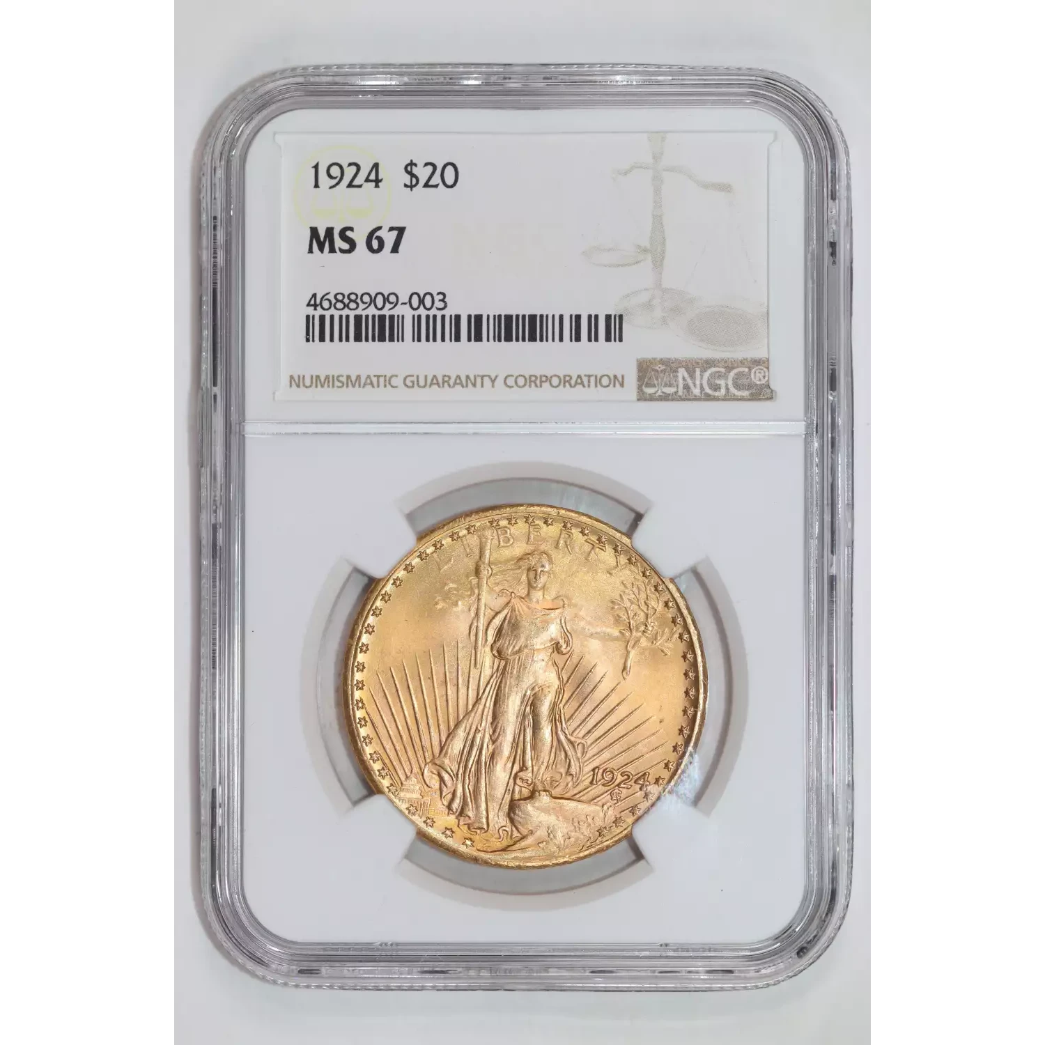 1924 $20 GOLD SAINT GAUDENS DOUBLE EAGLE NGC MS67