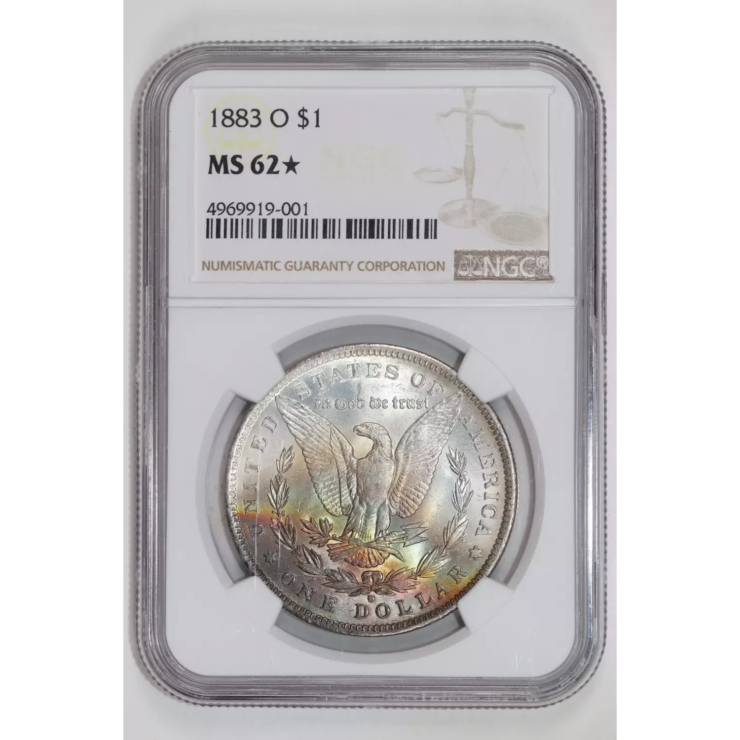 1883-O MORGAN DOLLAR NGC MS62* STAR RAINBOW REVERSE TONING!