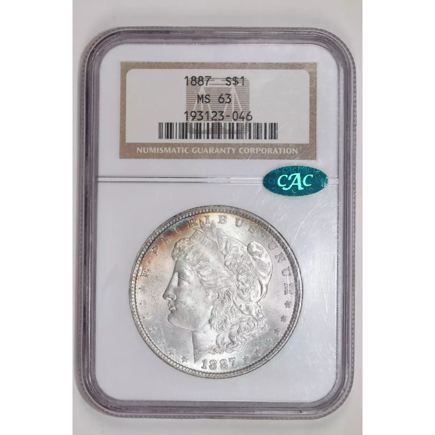 1887 MORGAN DOLLAR NGC MS63 CAC REVERSE RAINBOW TONING!