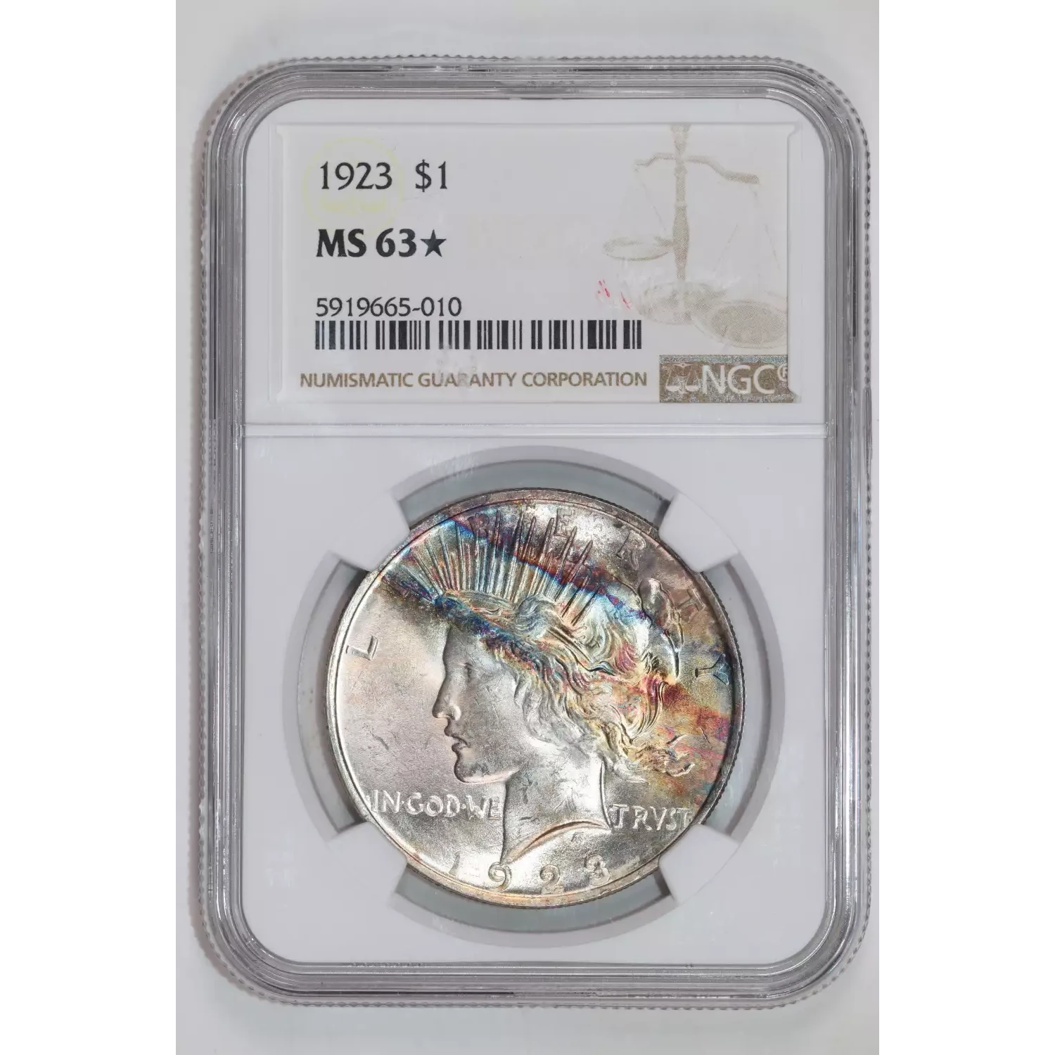 1923 PEACE DOLLAR NGC MS63* STAR MONSTAR RAINBOW TONING!