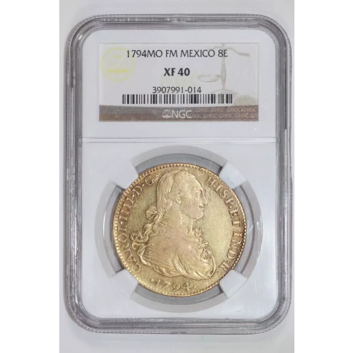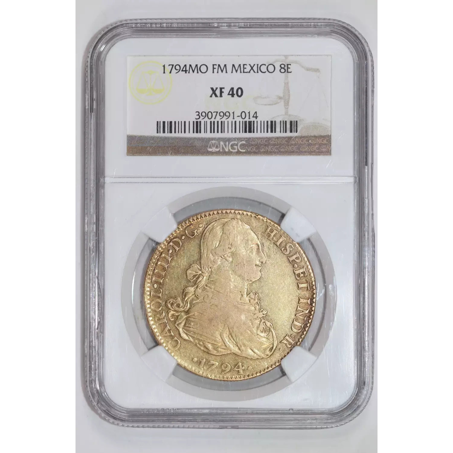1794 MO FM MEXICO GOLD 8 ESCUDOS NGC XF40
