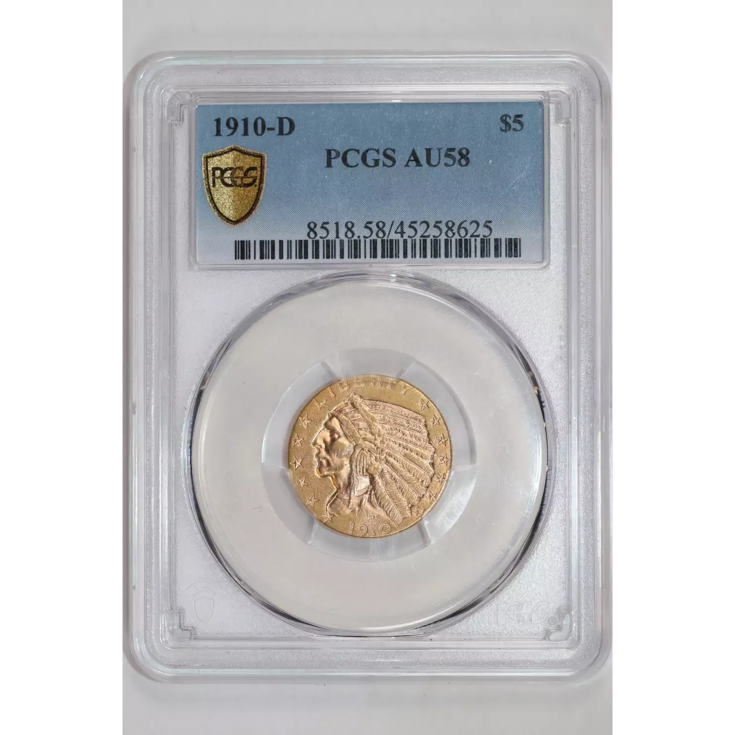 1910-D $5 GOLD INDIAN HALF EAGLE PCGS AU58