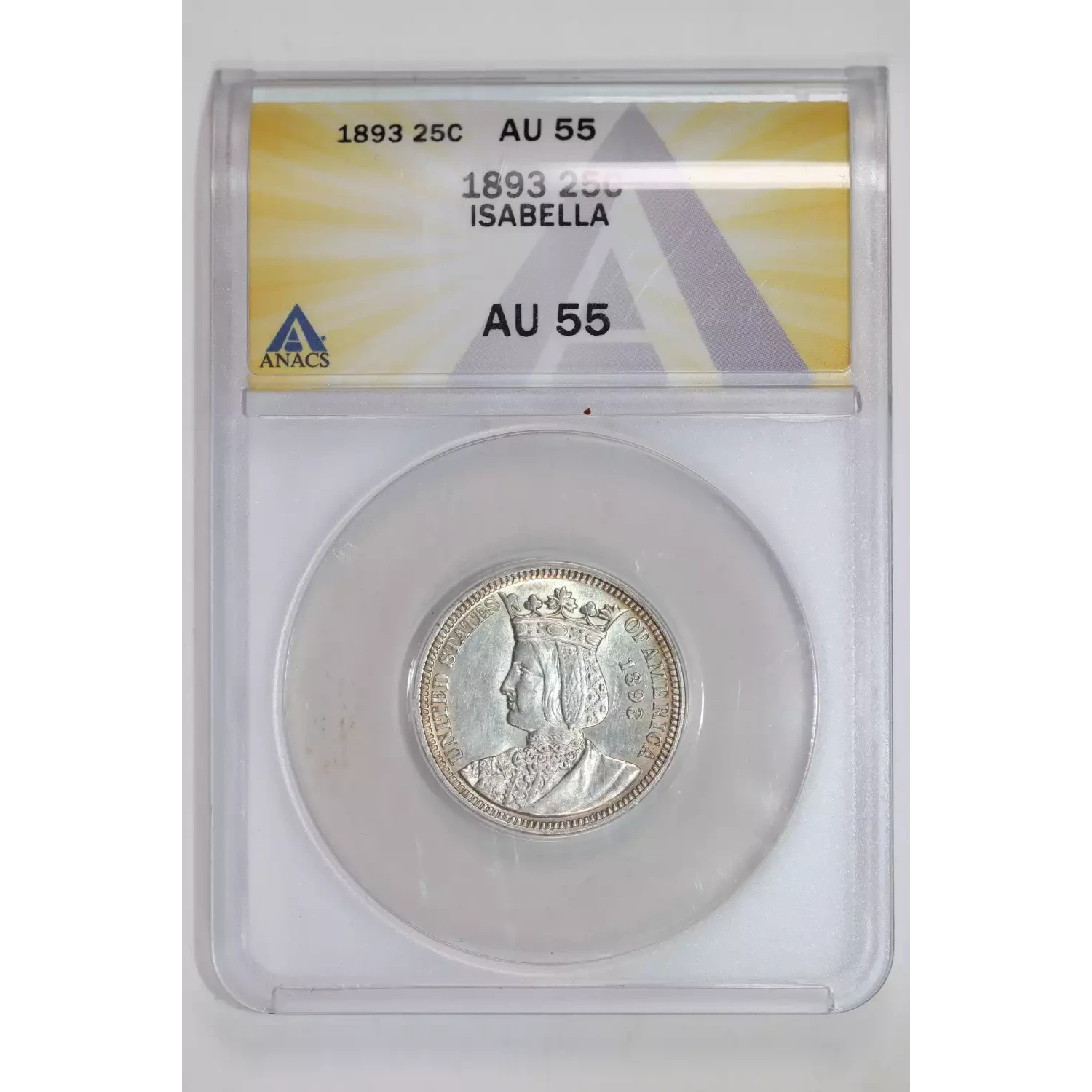 1893 ISABELLA SILVER COMMEMORATIVE QUARTER ANACS AU55