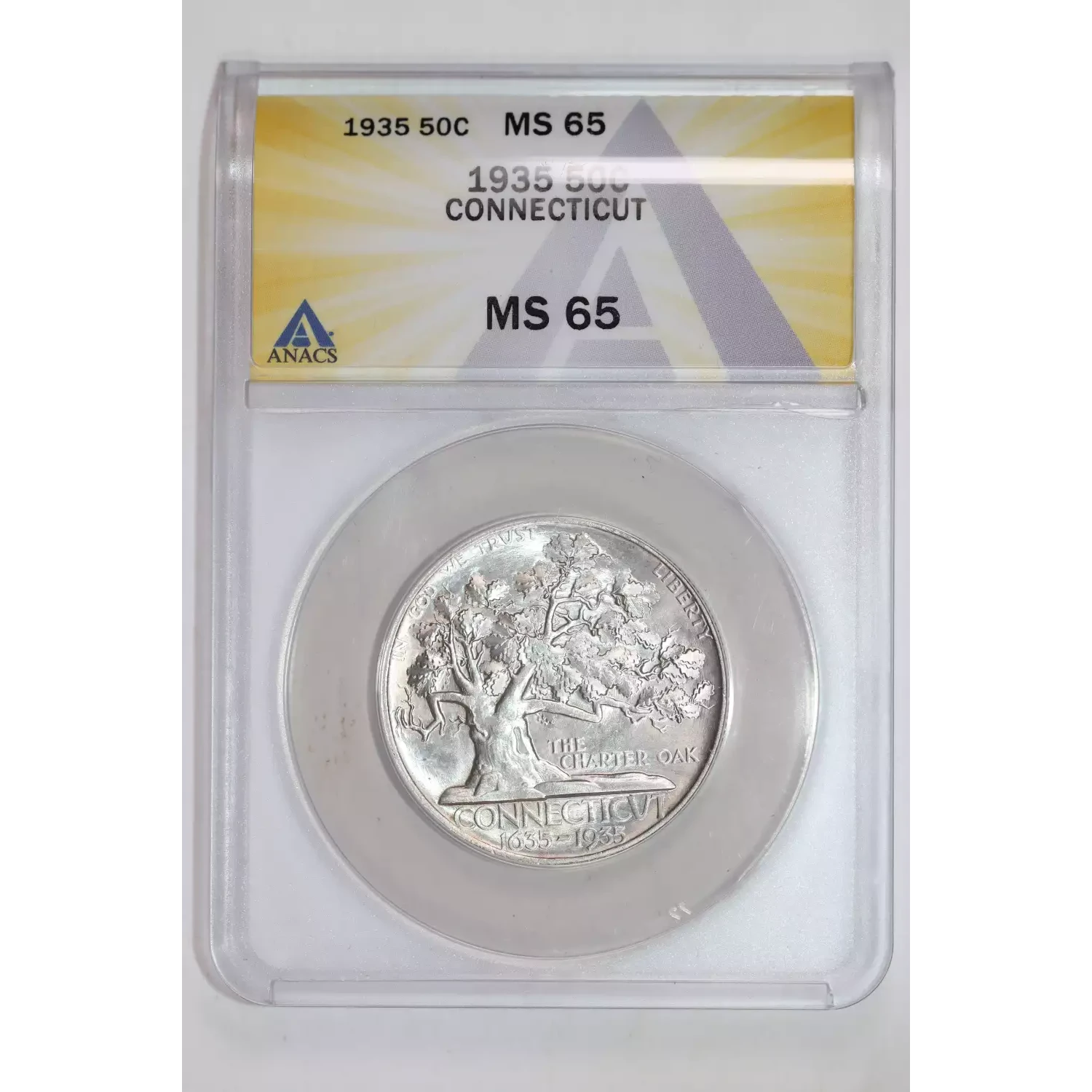1935 CONNECTICUT SILVER COMMEMORATIVE HALF DOLLAR ANACS MS65