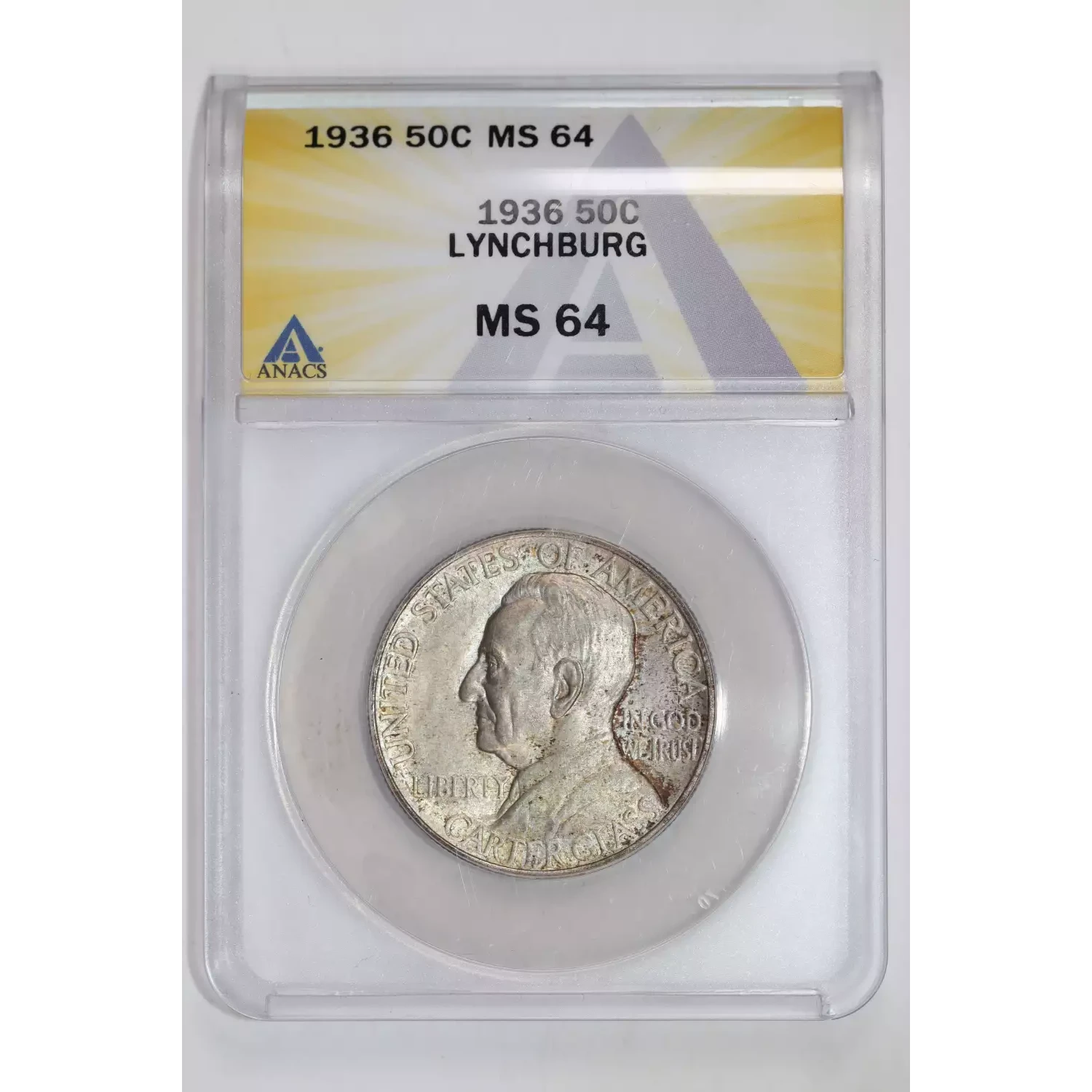 1936 LYNCHBURG SILVER COMMEMORATIVE HALF DOLLAR ANACS MS64