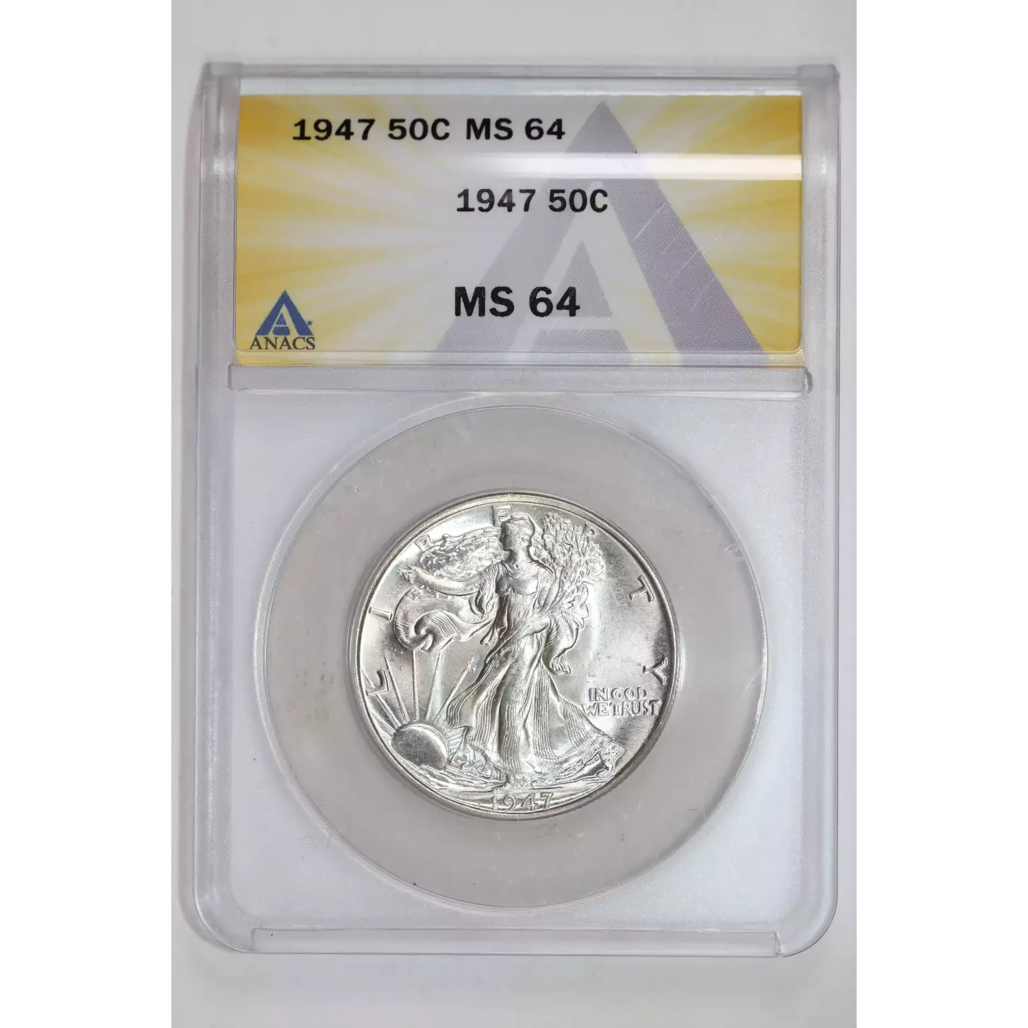 1947 WALKING LIBERTY HALF DOLLAR ANACS MS64 PQ!