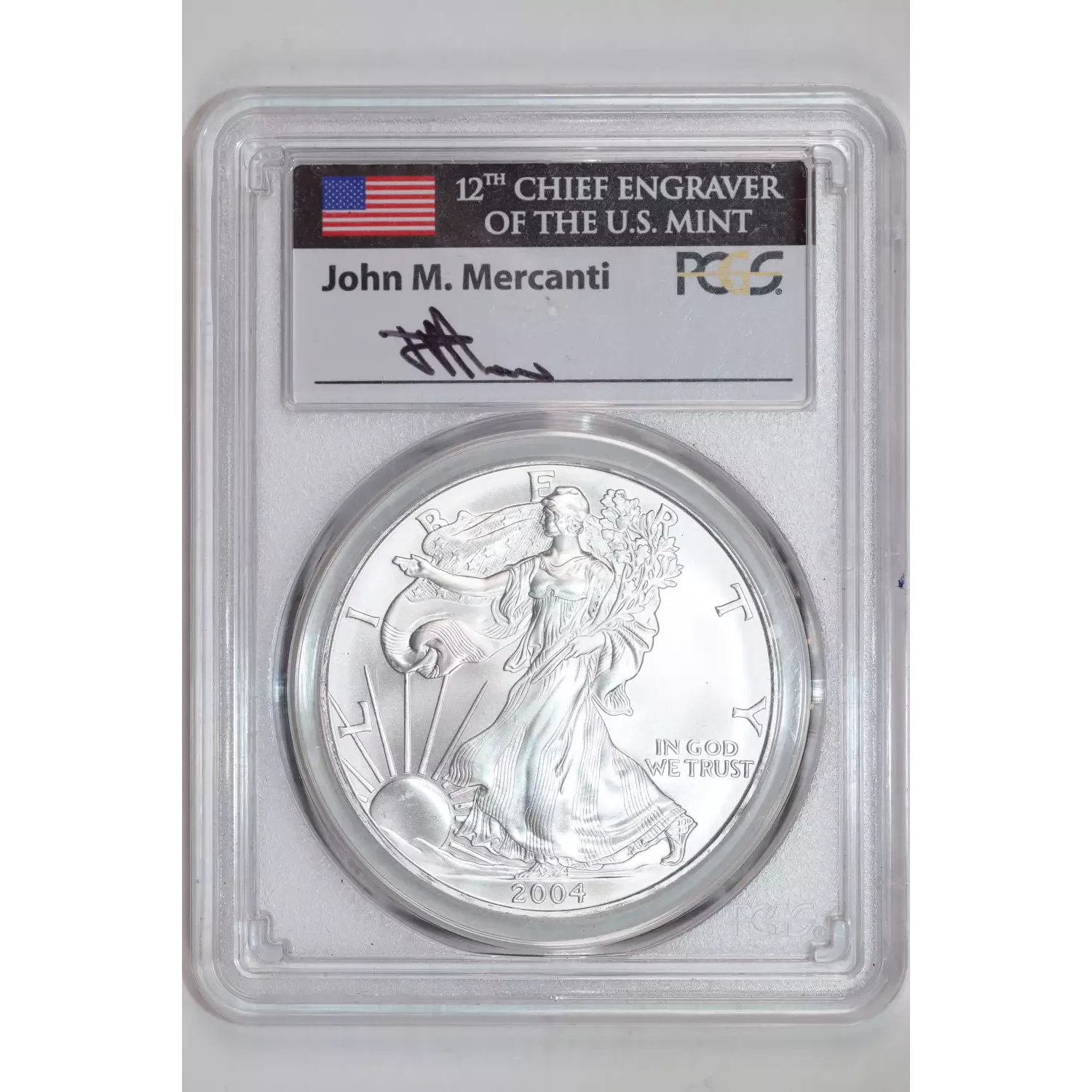 2004 SILVER EAGLE PCGS GEM UNCIRCULATED MERCANTI SIGNATURE