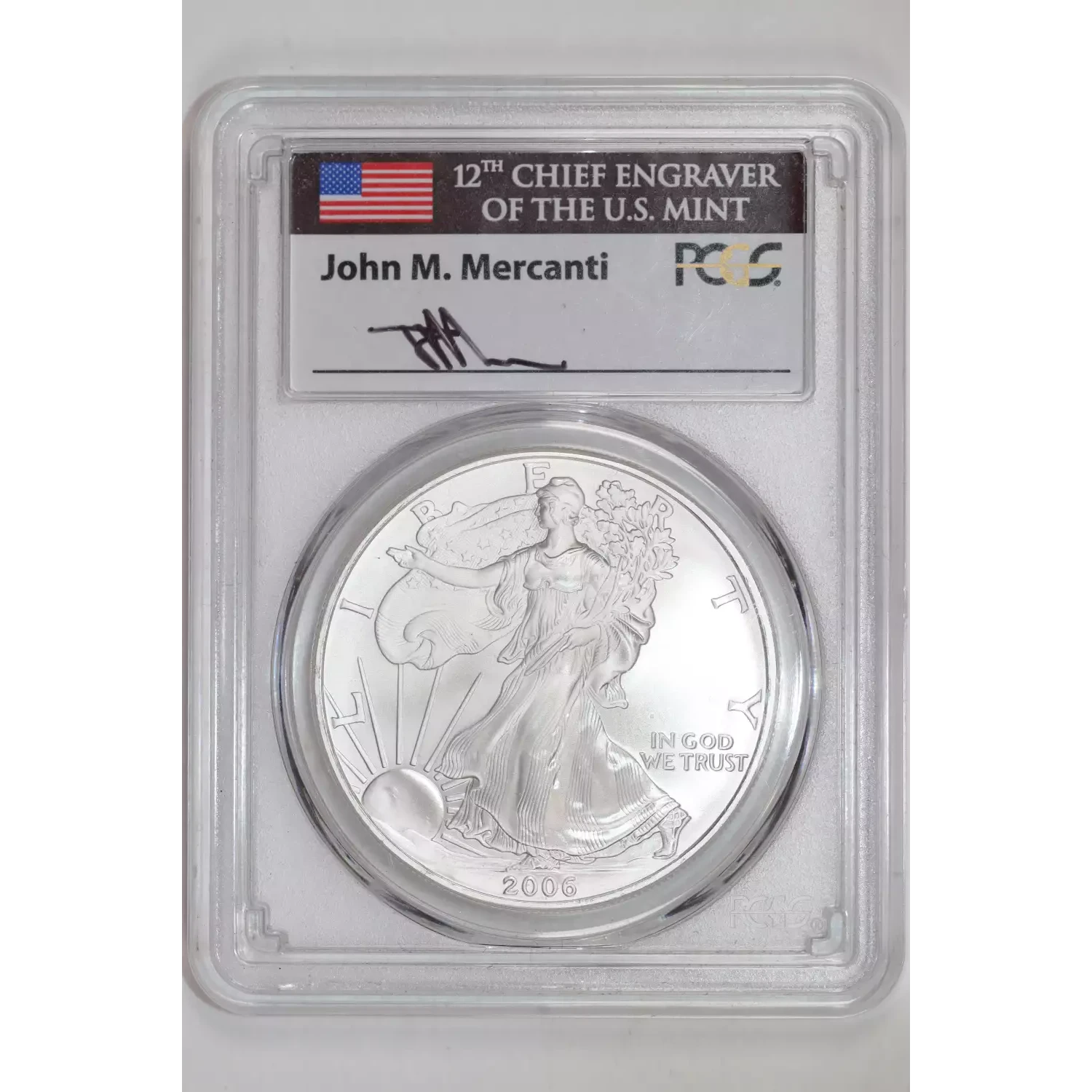 2006 SILVER EAGLE PCGS GEM UNCIRCULATED MERCANTI SIGNATURE