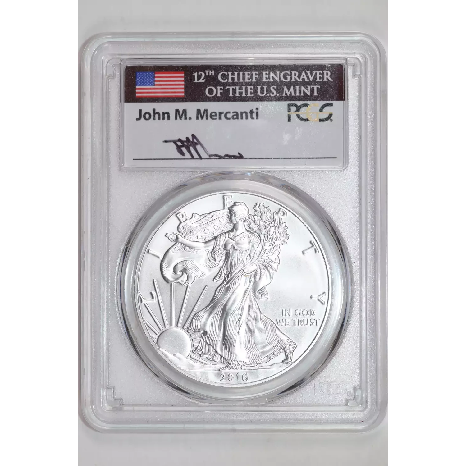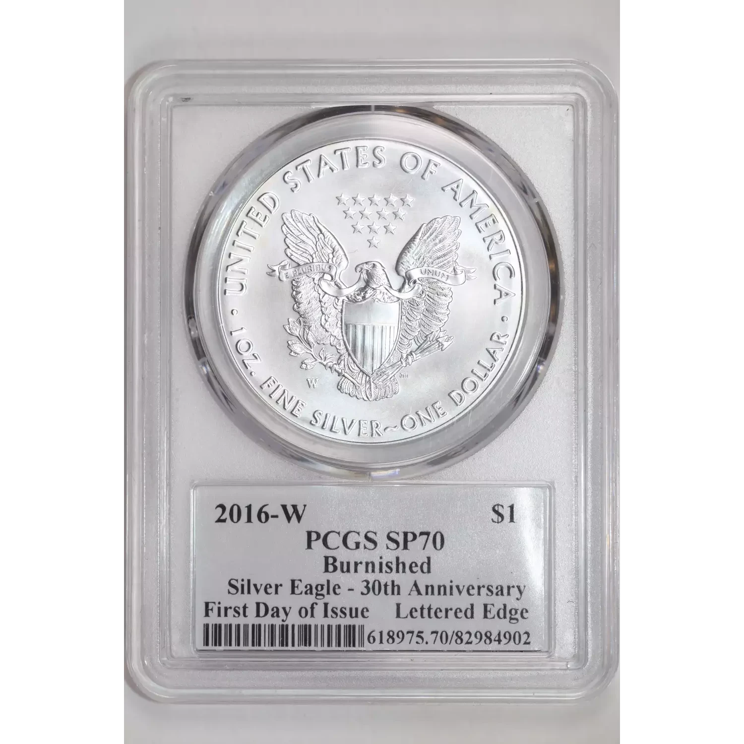 2016-W BURNISHED SILVER EAGLE PCGS SP70 MERCANTI SIGNATURE FDOI