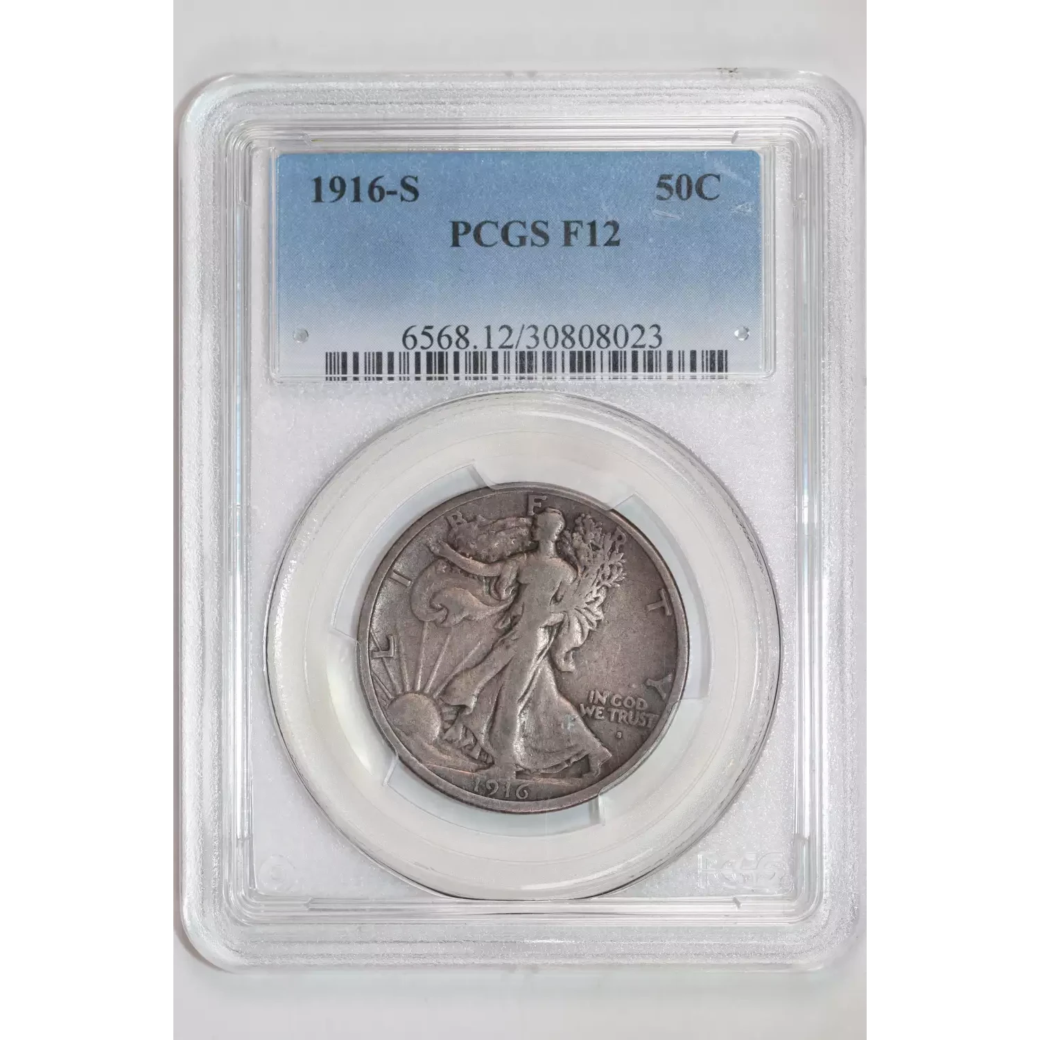 1916-S WALKING LIBERTY HALF DOLLAR PCGS F12