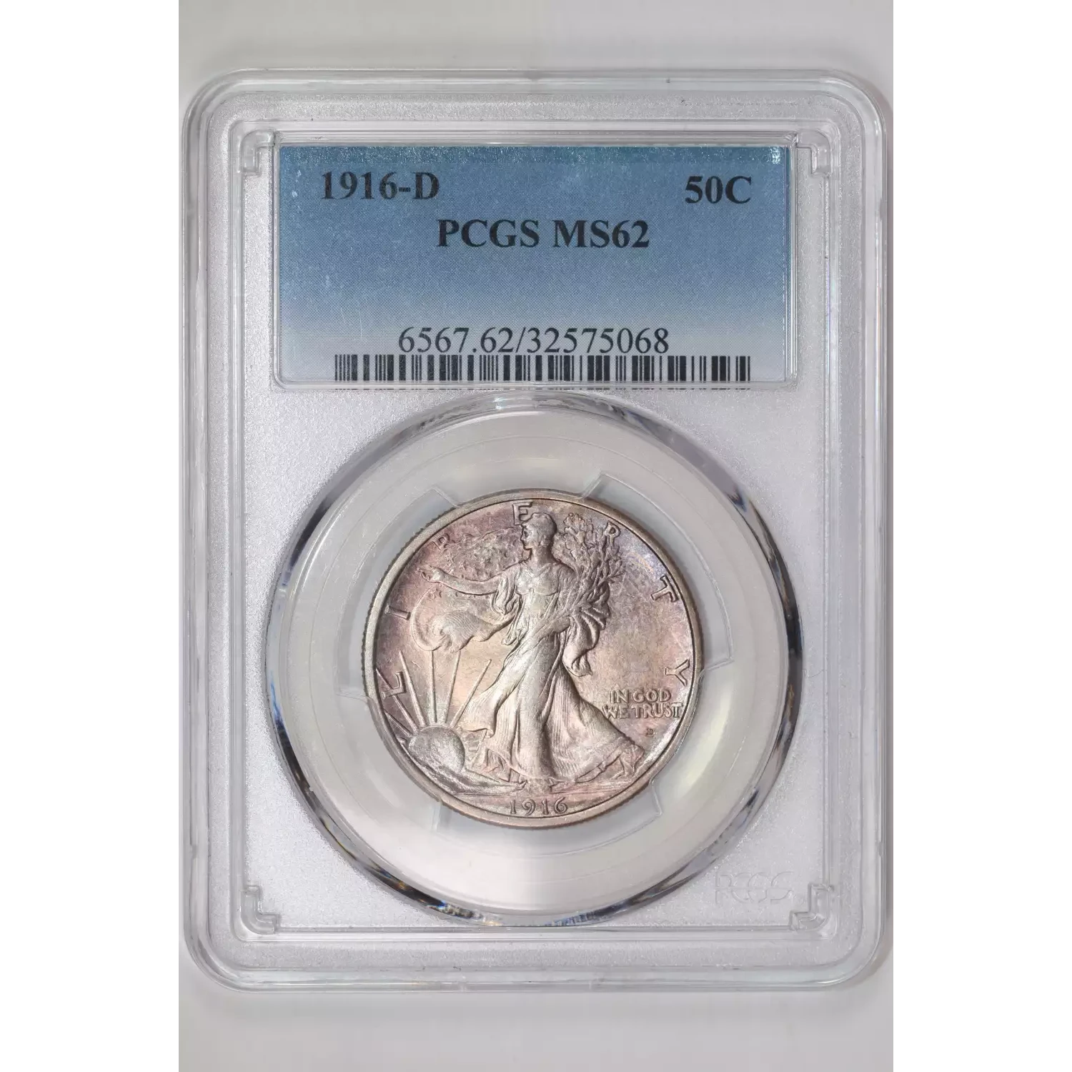 1916-D Half Dollars Liberty Walking PCGS MS-62