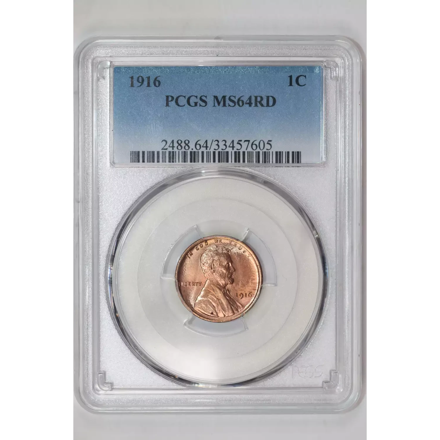 1916 Small Cents Lincoln, Wheat Ears Reverse PCGS MS-64 RD