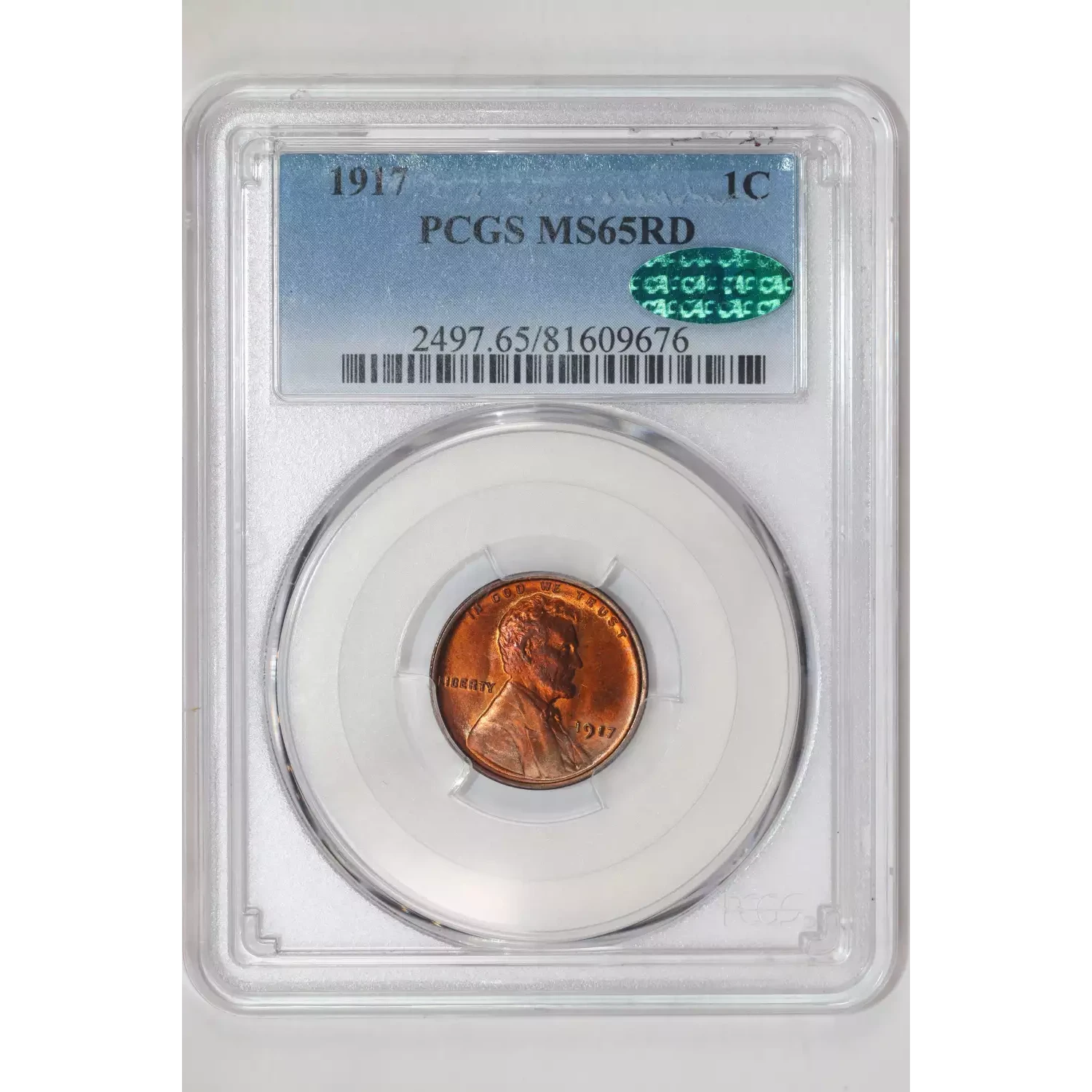 1917 Small Cents Lincoln, Wheat Ears Reverse PCGS MS-65 RD CAC