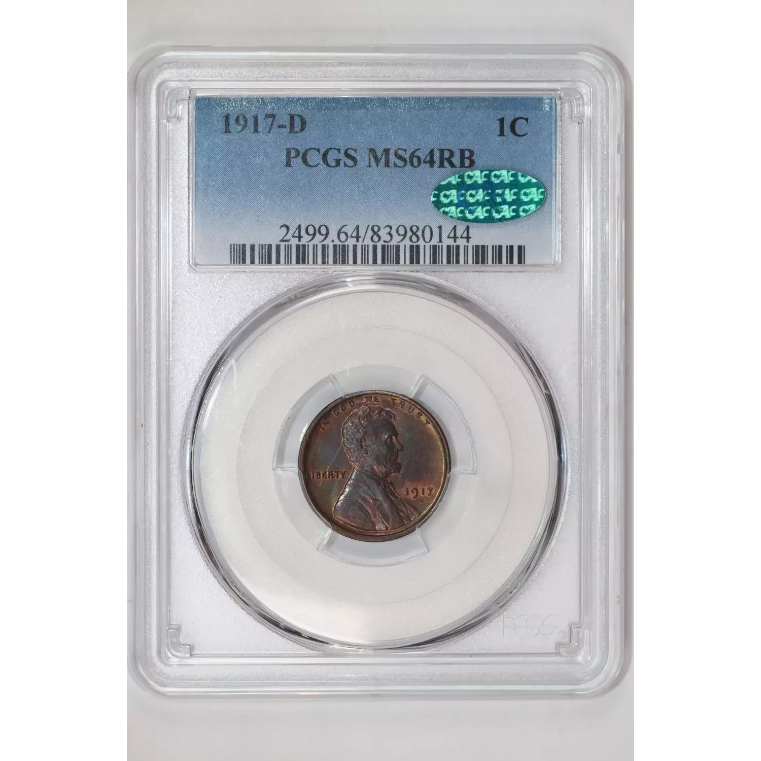 1917-D LINCOLN WHEAT CENT PCGS MS64 RB CAC