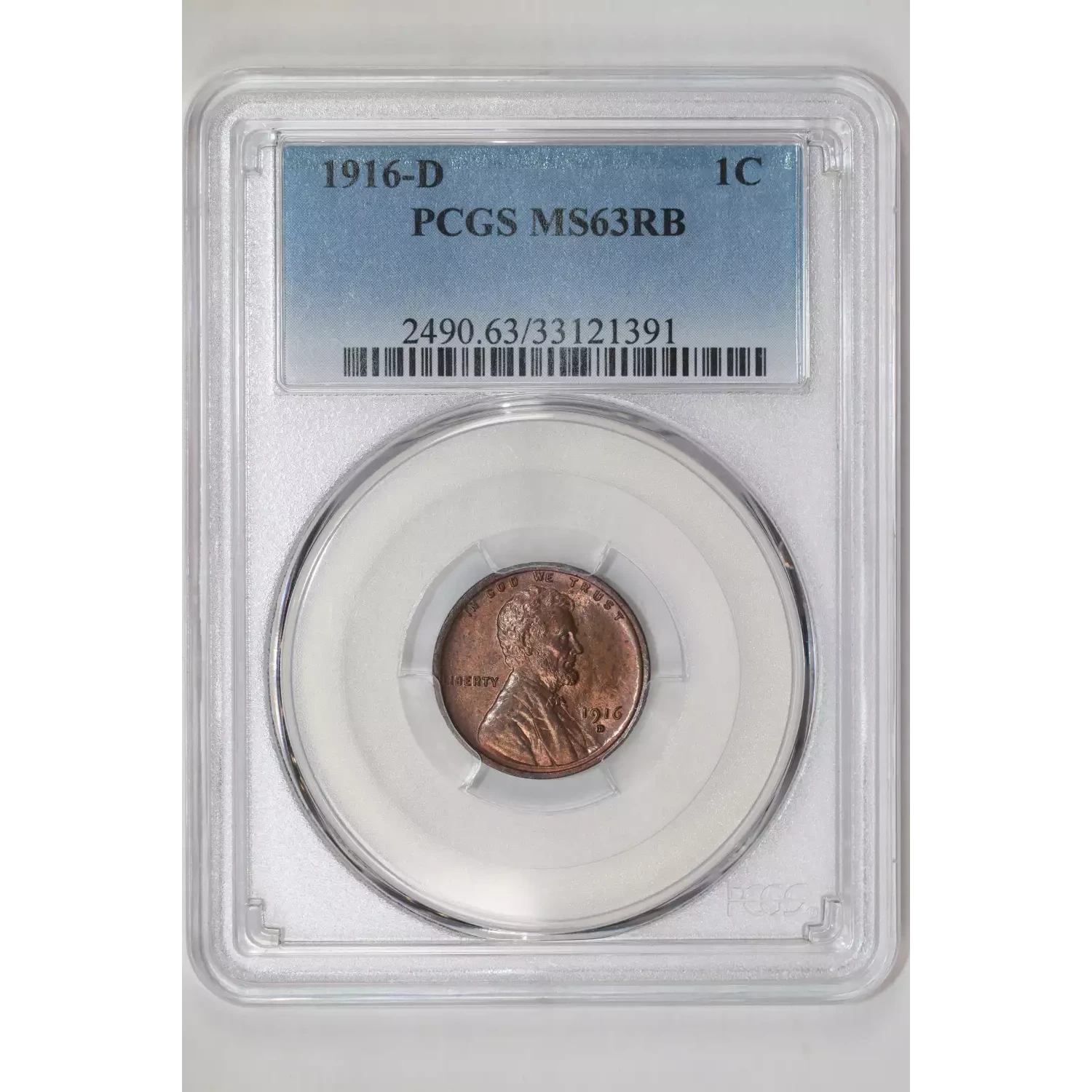 1916-D LINCOLN WHEAT CENT PCGS MS63 RB