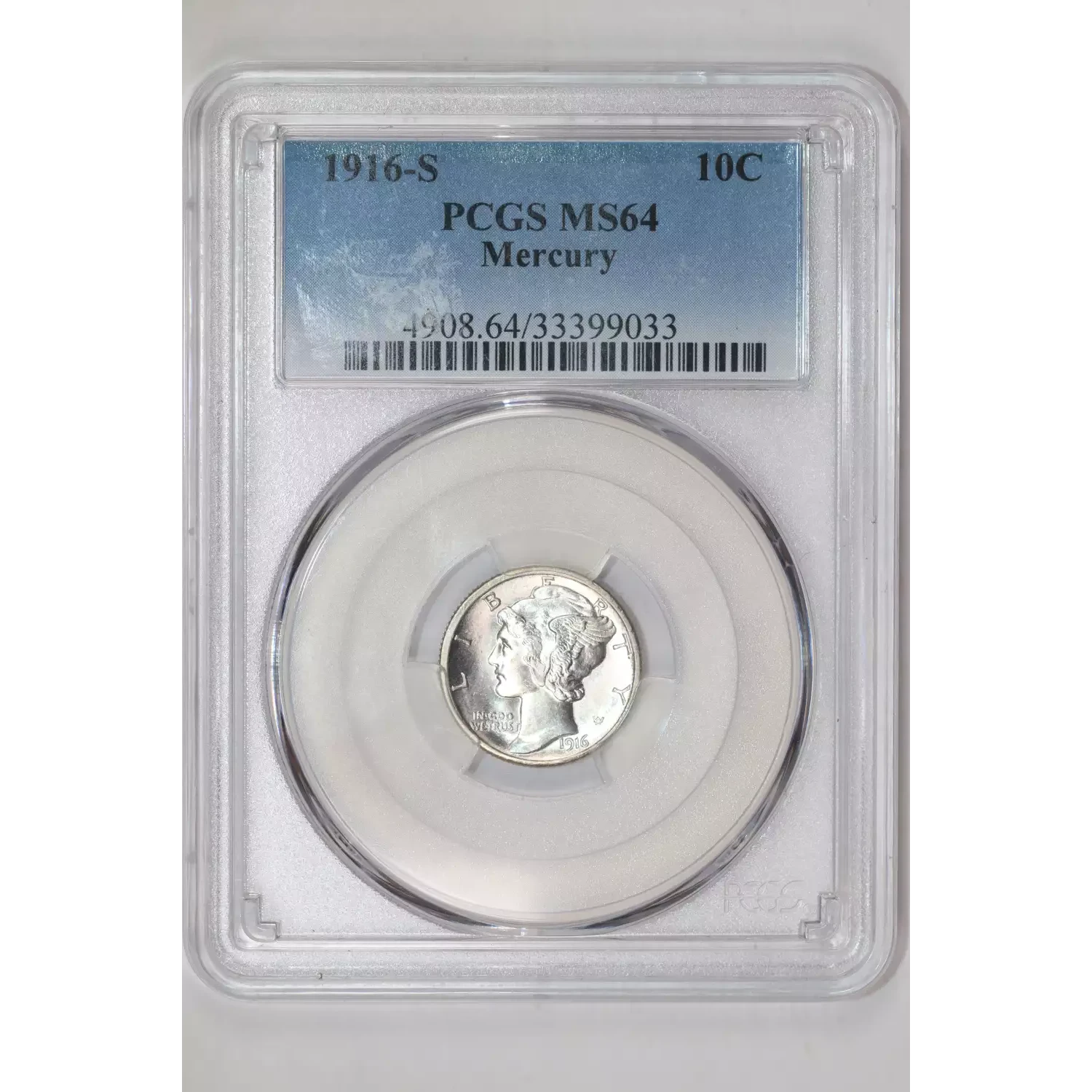 1916-S MERCURY DIME PCGS MS64 - PQ!