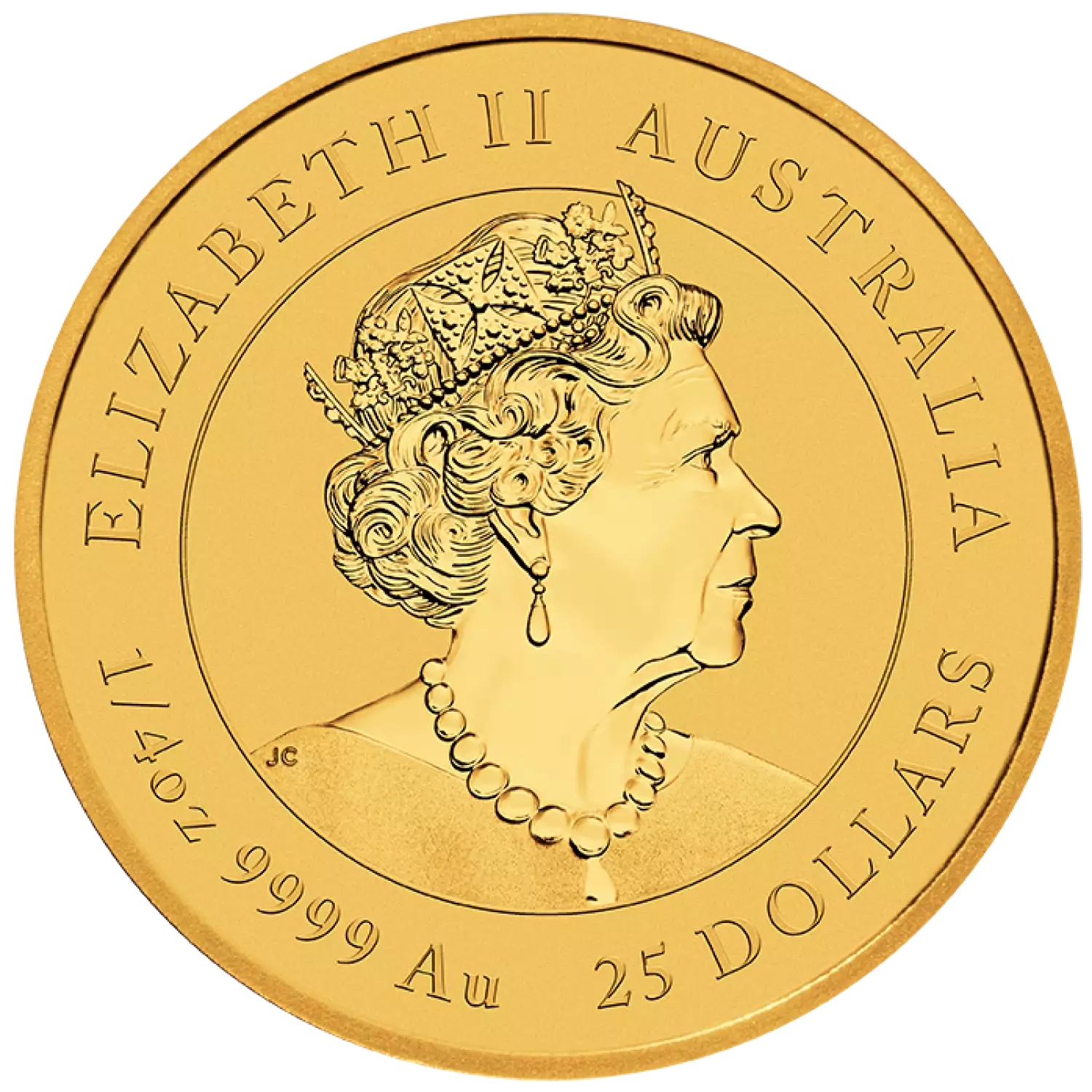 The beautiful designs of Australian Lunar Gold Coins have made them attractive among investors and collectors. The 2023 ¼ oz Australian Perth Mint Gold Lunar III: Year of the Rabbit is composed of 1/4 oz of .9999 pure Gold. This coin is minted by the Perth Mint and guaranteed by the government of Australia.The Obverse of the coin features Queen Elizabeth II as the coin was designed and started minting just before her death earlier this year. The reverse of this years coin features two rabbits beneath a bush. One sitting peacefully while the other gold rabbit is standing on its hind legs appearing to reach for berries on the bush above.
